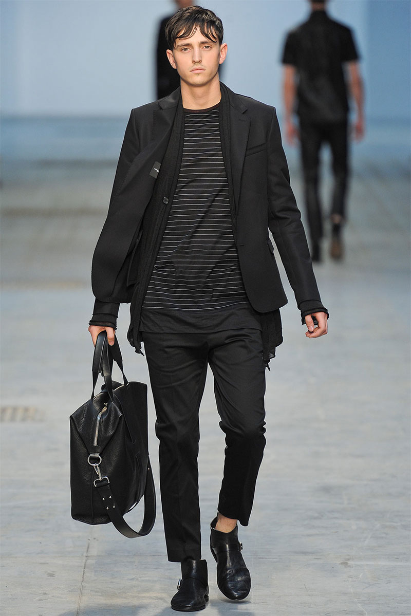 Ennio Capasa presented his Spring/Summer 2014 collection for Costume National during Milan Fashion Week. Entitled “I-Cowboy“, the collection featured a minimal chic and rocknroll aesthetic.