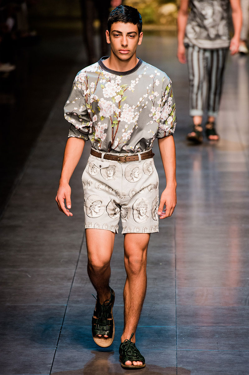 Domenico Dolce and Stefano Gabbana created a Spring/Summer 2014 collection inspired by Sicilian mythology, featuring prints of places such as the Valle dei Templi of Agrigento and the Tempio di Apollo of Syracuse, prints of antique gods such as those of Zeus and Apollo, and great tailoring.