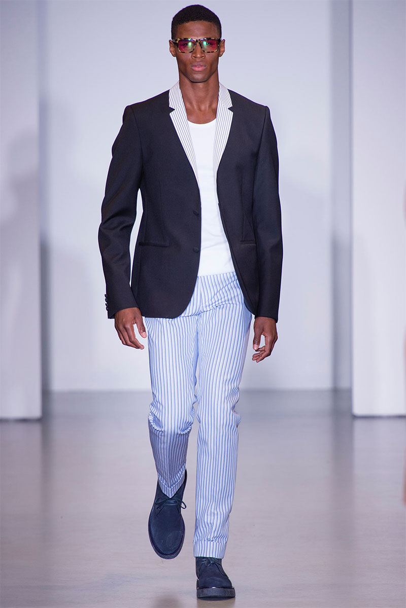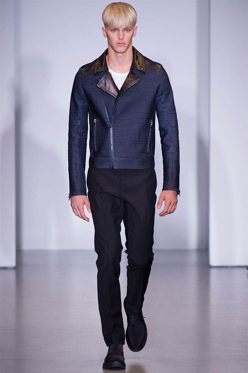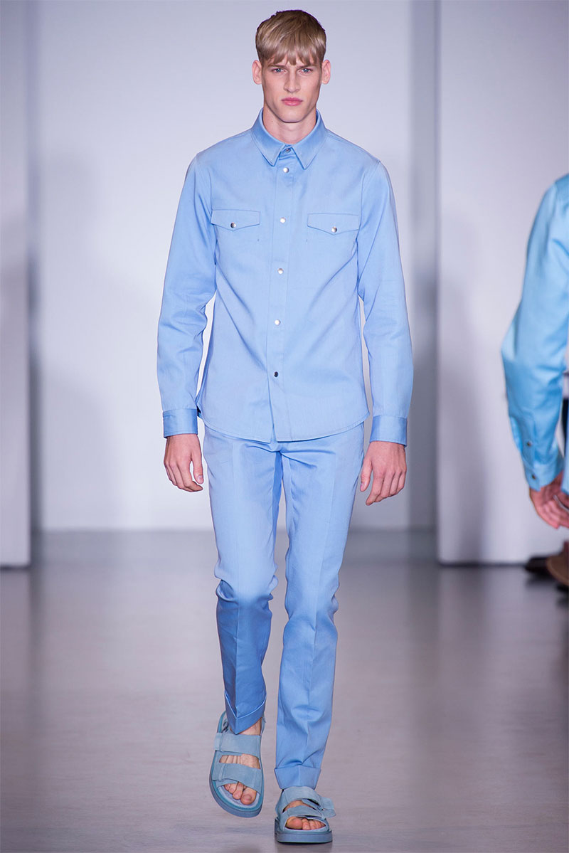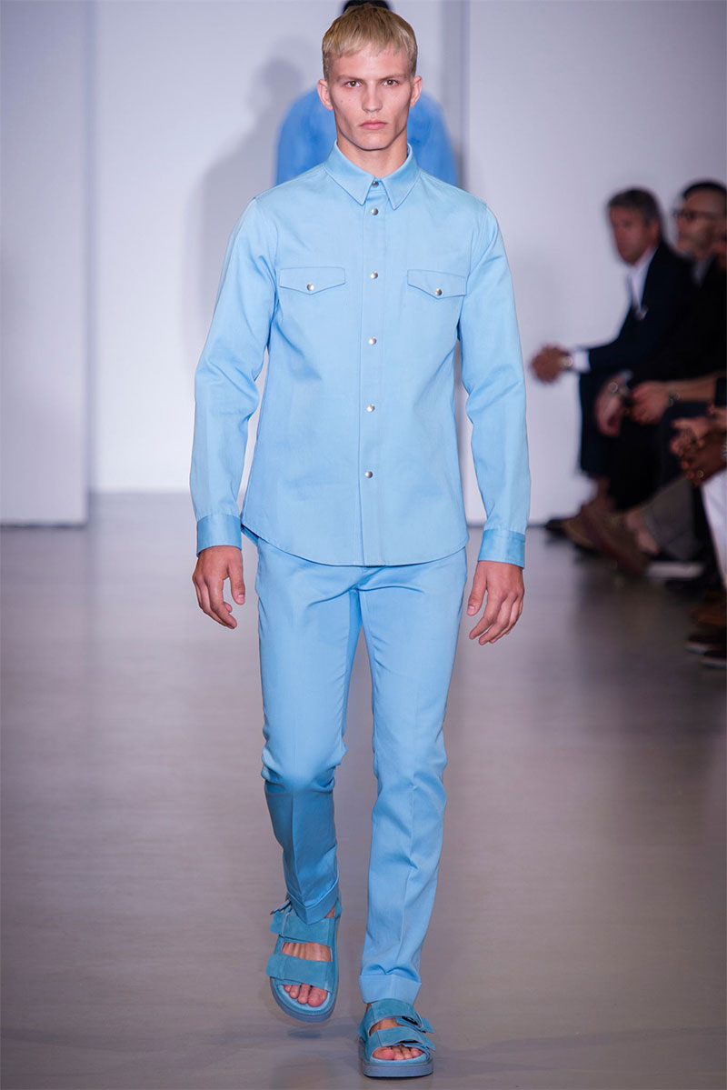 Italo Zucchelli presented his Spring/Summer 2014 collection for Calvin Klein during Milan Fashion Week, featuring multiple shades of blue.