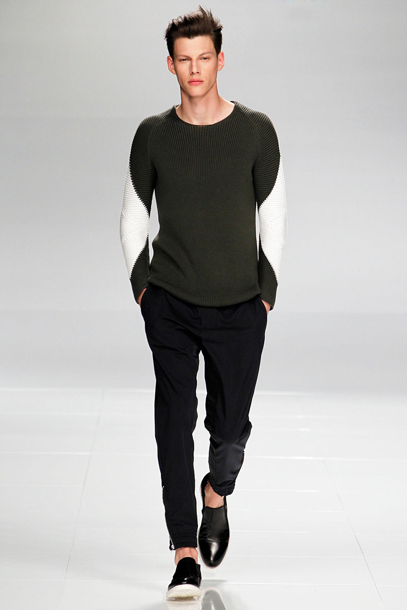 Iceberg presented its Spring/Summer 2014 collection during Milan Fashion Week, offering a streamlined silhouette, clean cuts and geometric patterns.