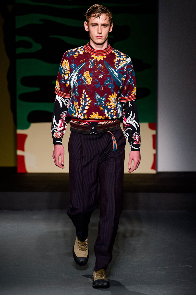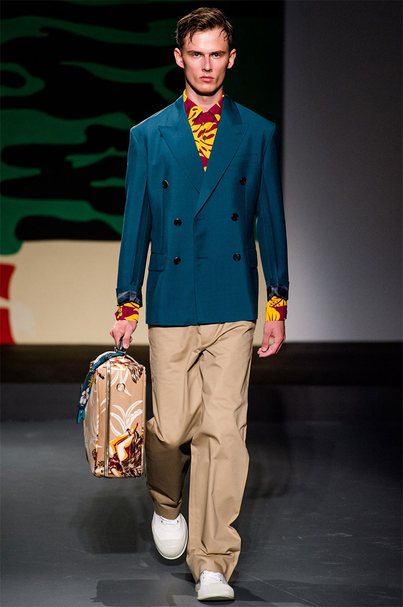Miuccia Prada presented her Spring/Summer 2014 collection during Milan Fashion Week, inspired by “the cliché of summer and the exotic“. The collection featured a bold color palette, tropical florals and Hawaiian girls printed in elegant fabrics.