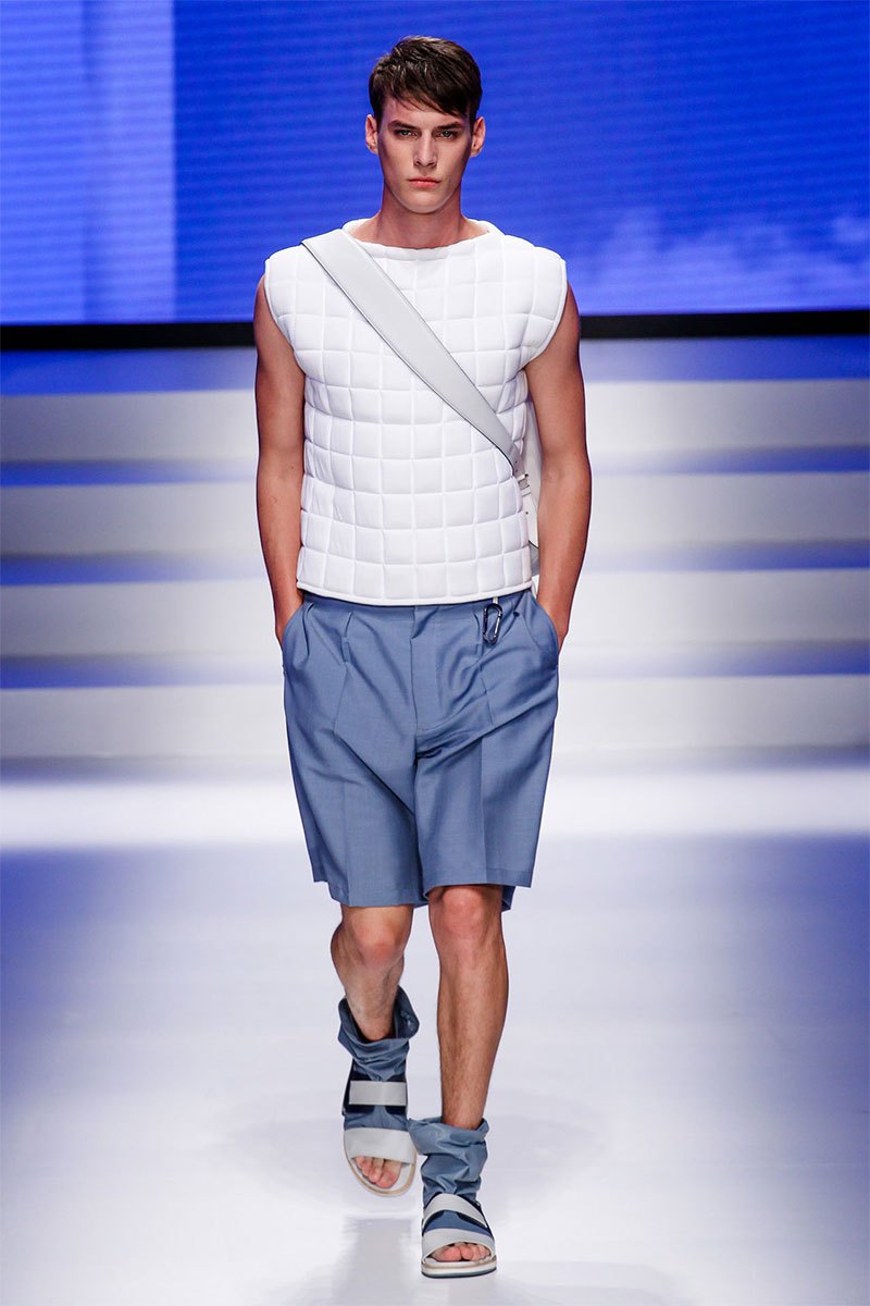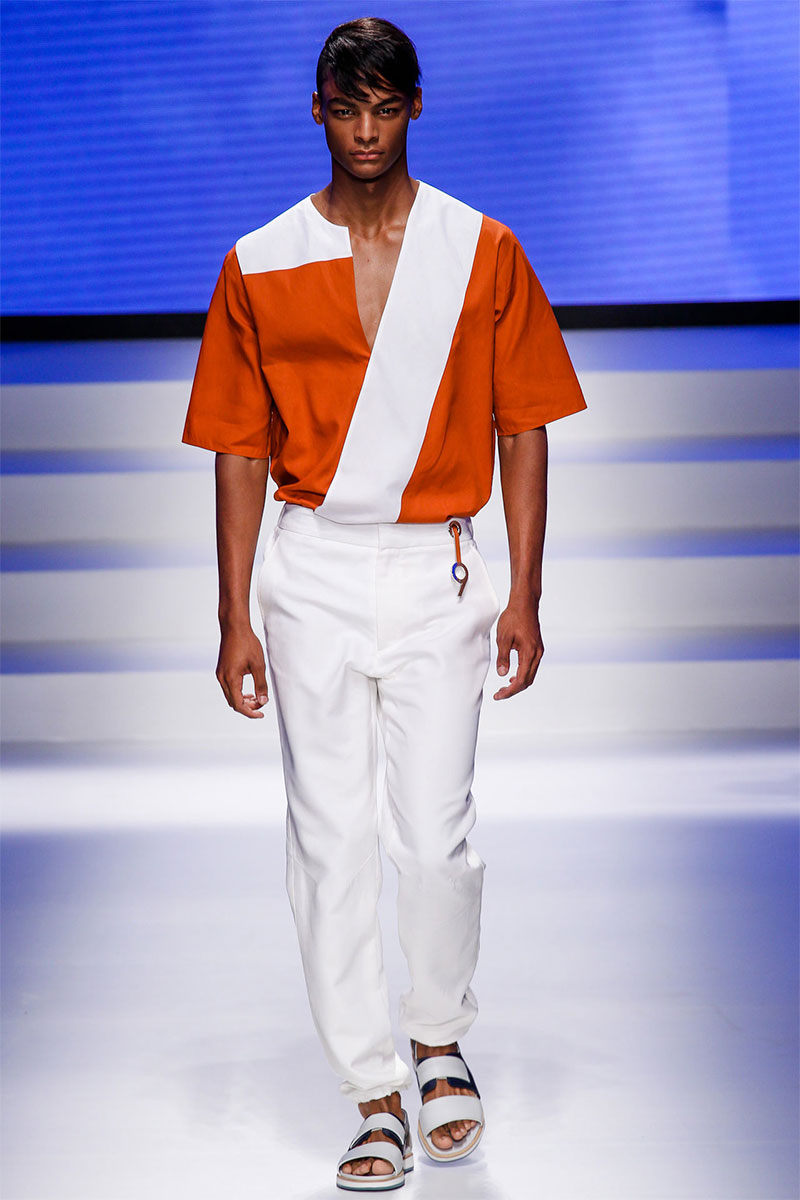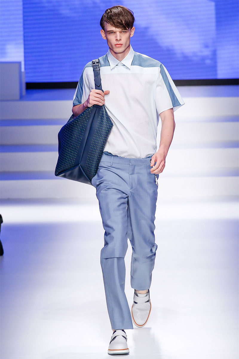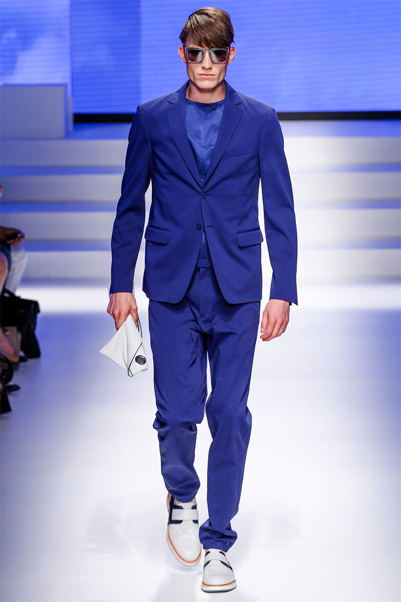 Massimiliano Giornetti presented a sporty Spring/Summer 2014 collection for Salvatore Ferragamo duringMilan Fashion Week. The numbers 1, 2, 4 and 7 were featured on several pieces.