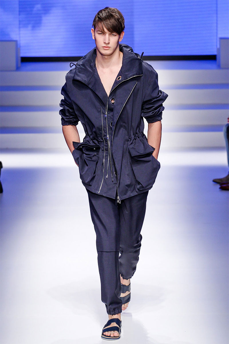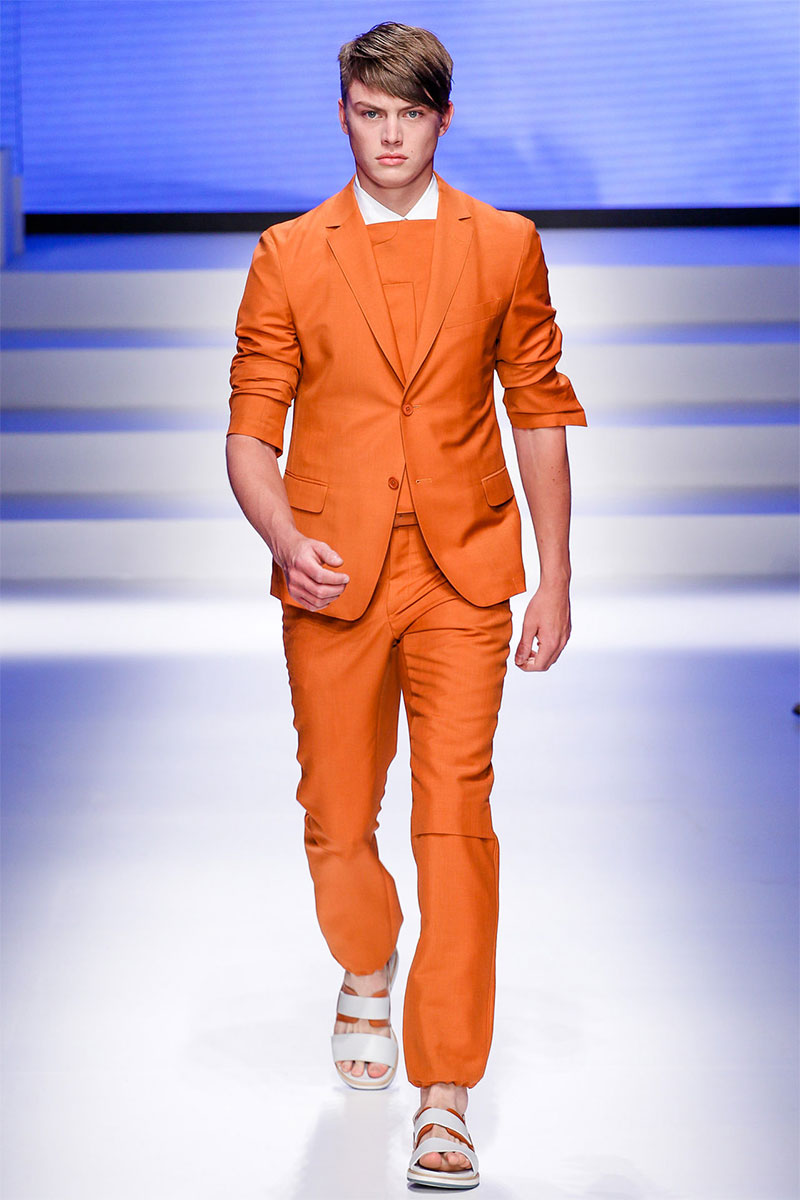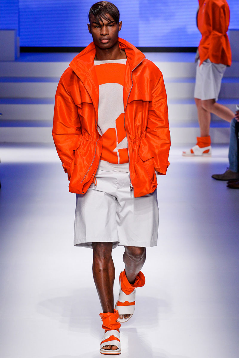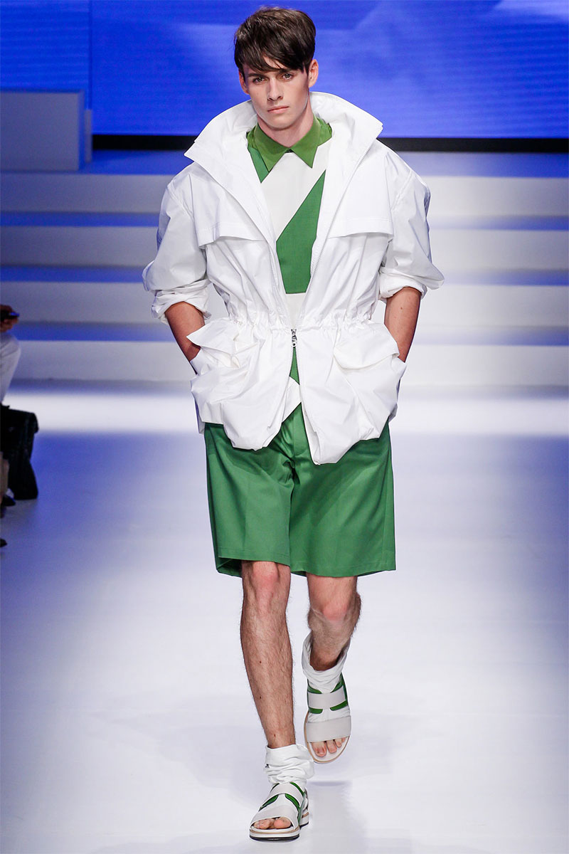 Massimiliano Giornetti presented a sporty Spring/Summer 2014 collection for Salvatore Ferragamo duringMilan Fashion Week. The numbers 1, 2, 4 and 7 were featured on several pieces.