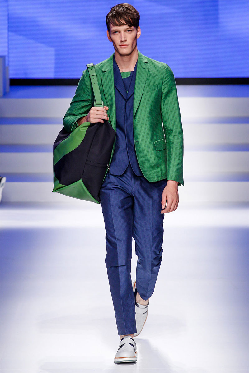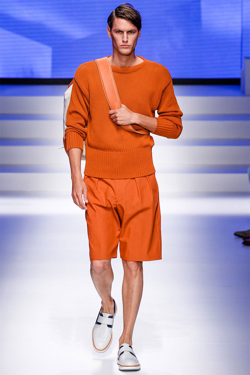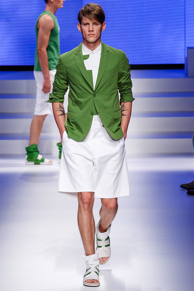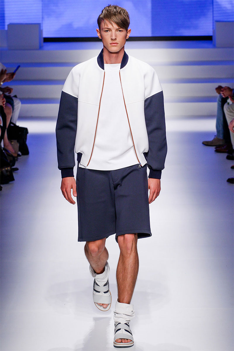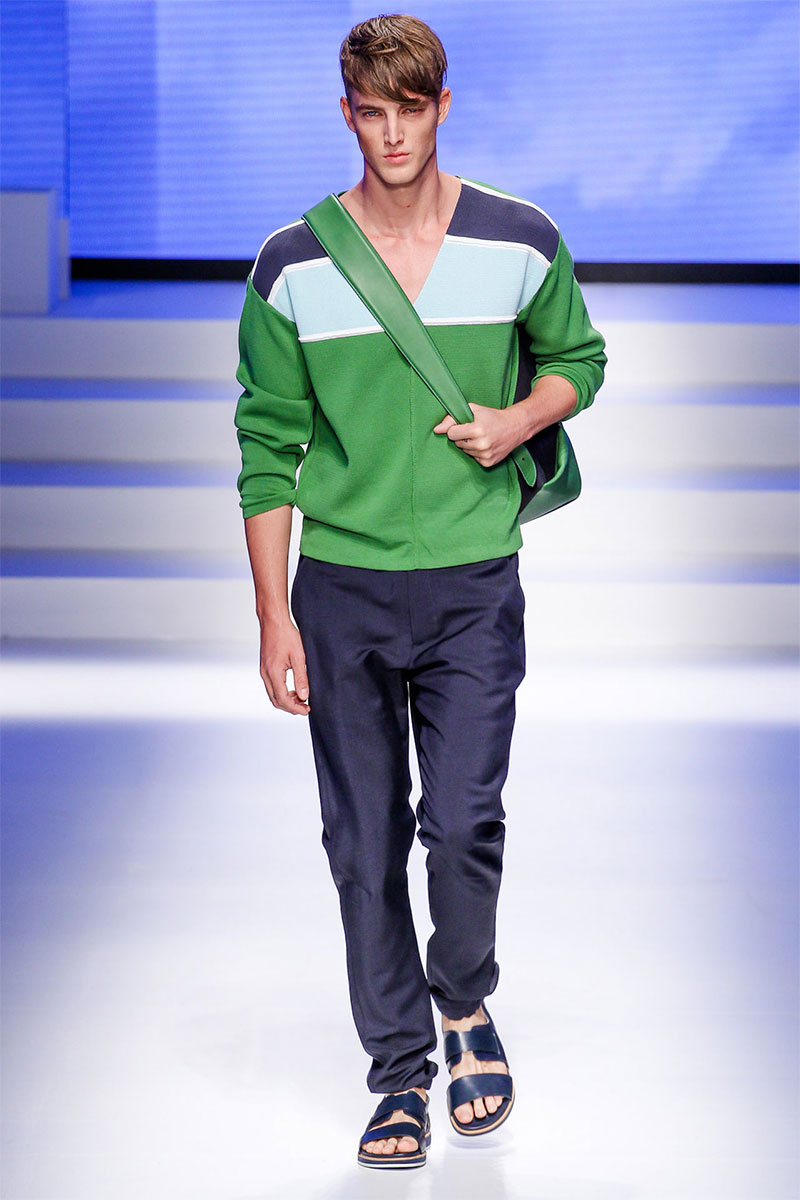 Massimiliano Giornetti presented a sporty Spring/Summer 2014 collection for Salvatore Ferragamo duringMilan Fashion Week. The numbers 1, 2, 4 and 7 were featured on several pieces.
