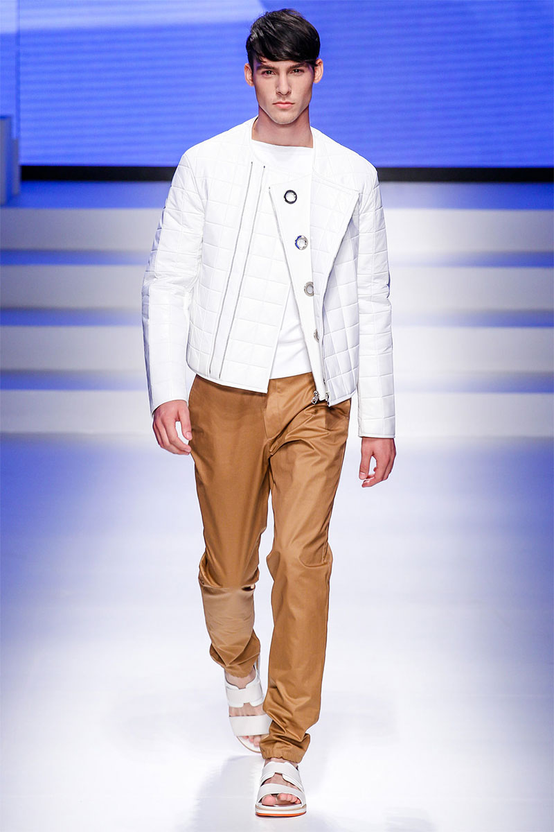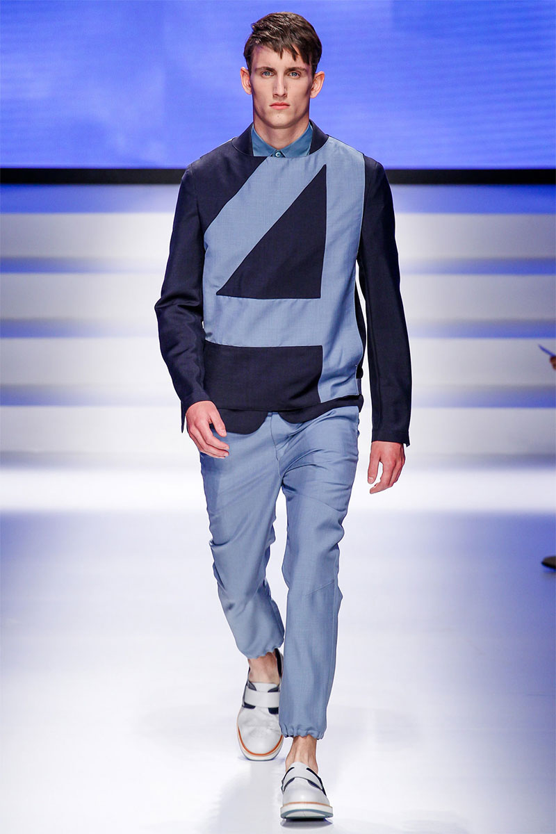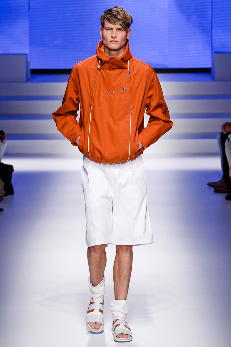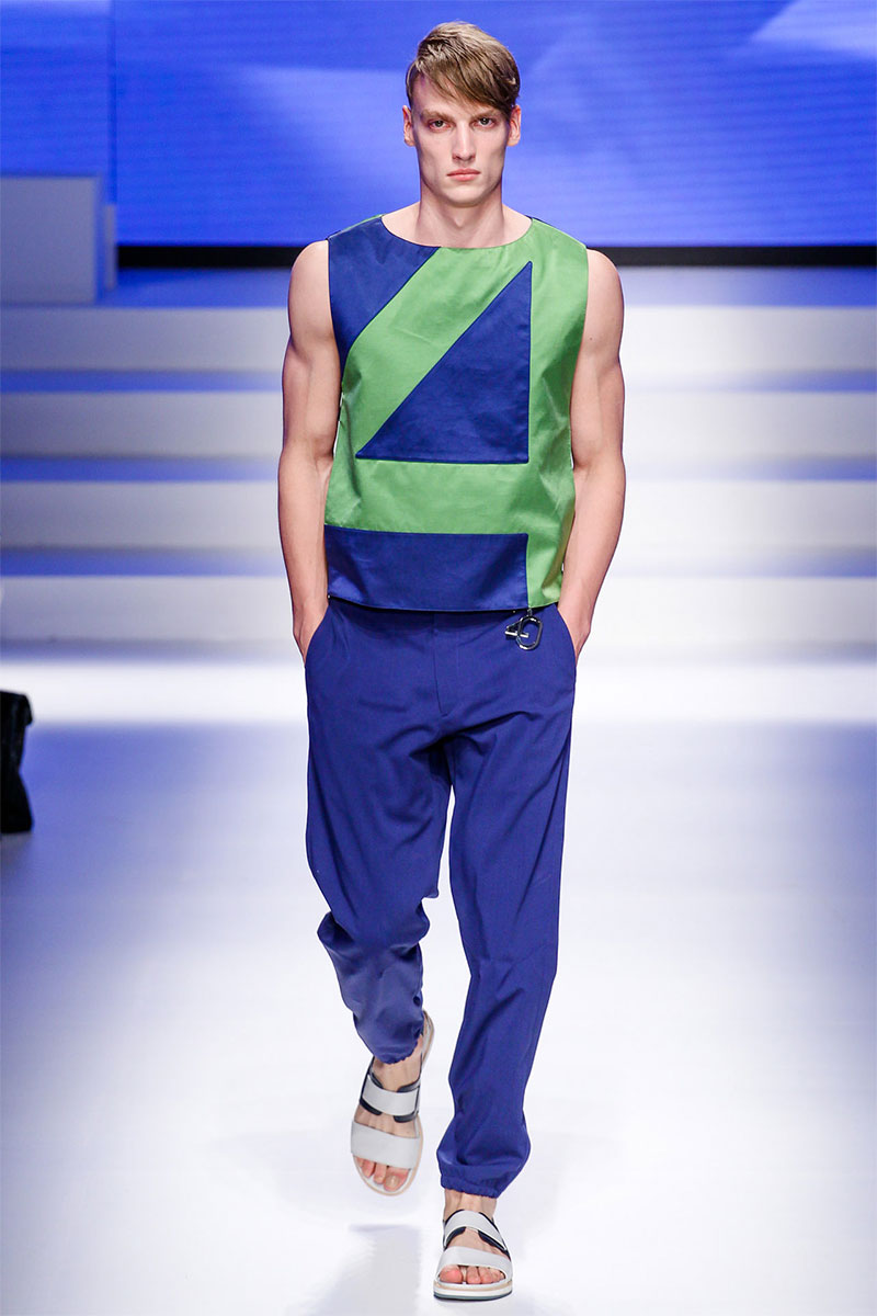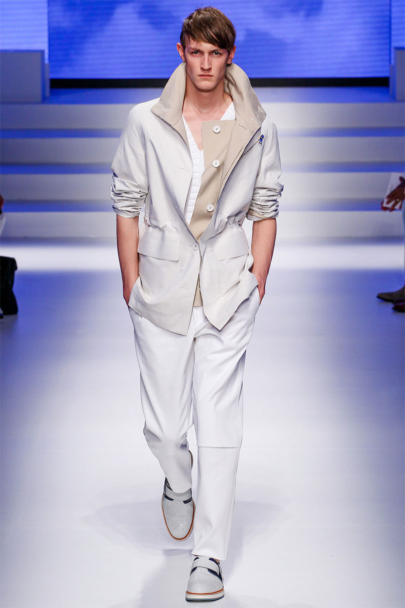 Massimiliano Giornetti presented a sporty Spring/Summer 2014 collection for Salvatore Ferragamo duringMilan Fashion Week. The numbers 1, 2, 4 and 7 were featured on several pieces.