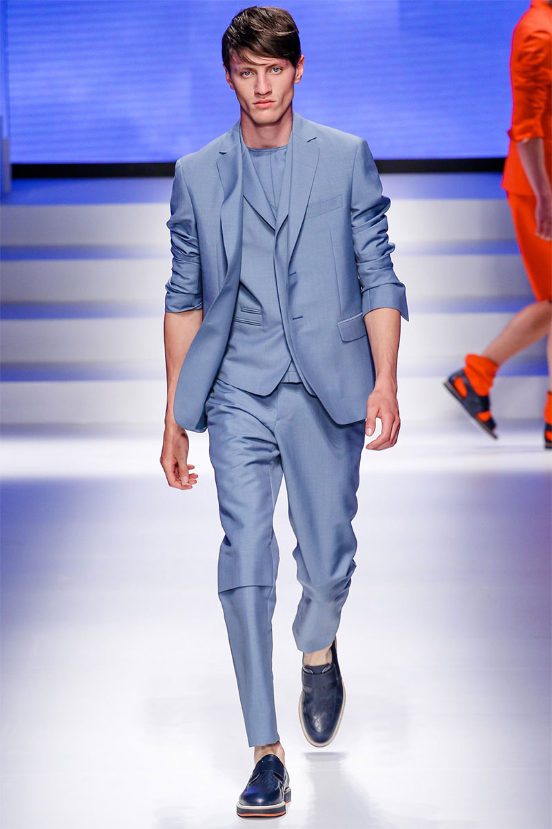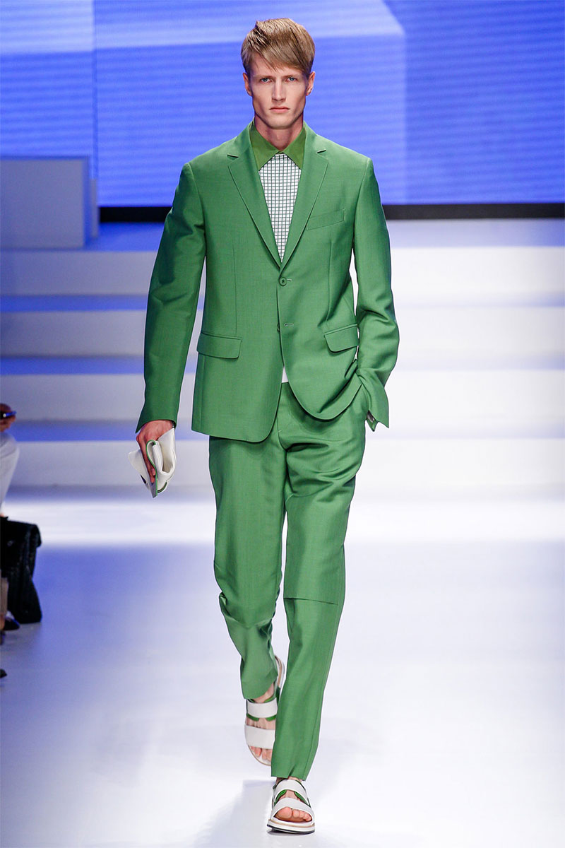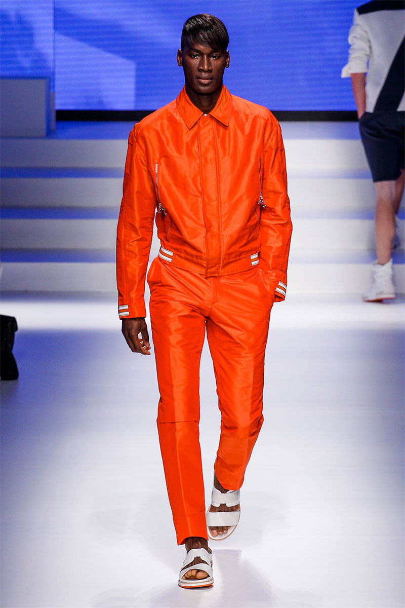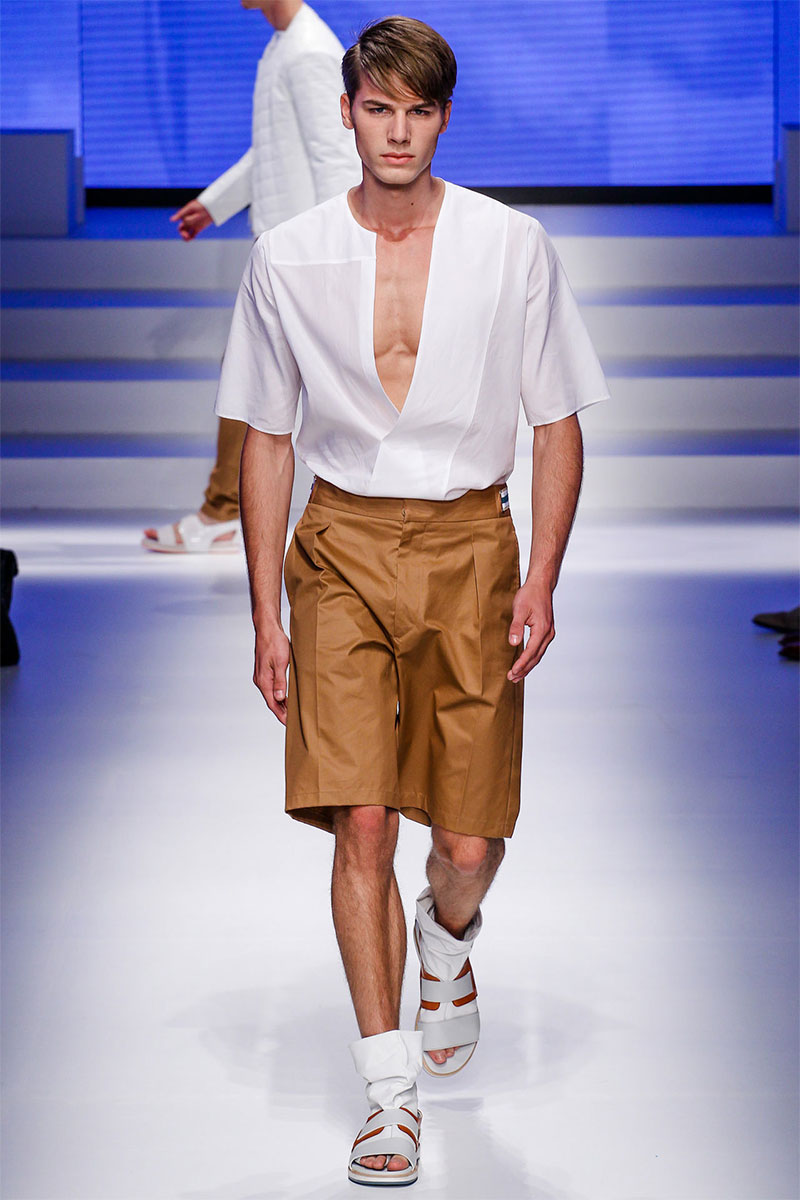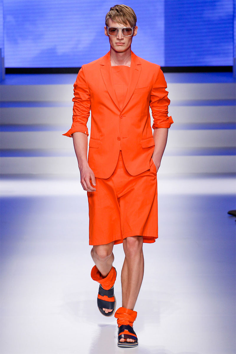 Massimiliano Giornetti presented a sporty Spring/Summer 2014 collection for Salvatore Ferragamo duringMilan Fashion Week. The numbers 1, 2, 4 and 7 were featured on several pieces.