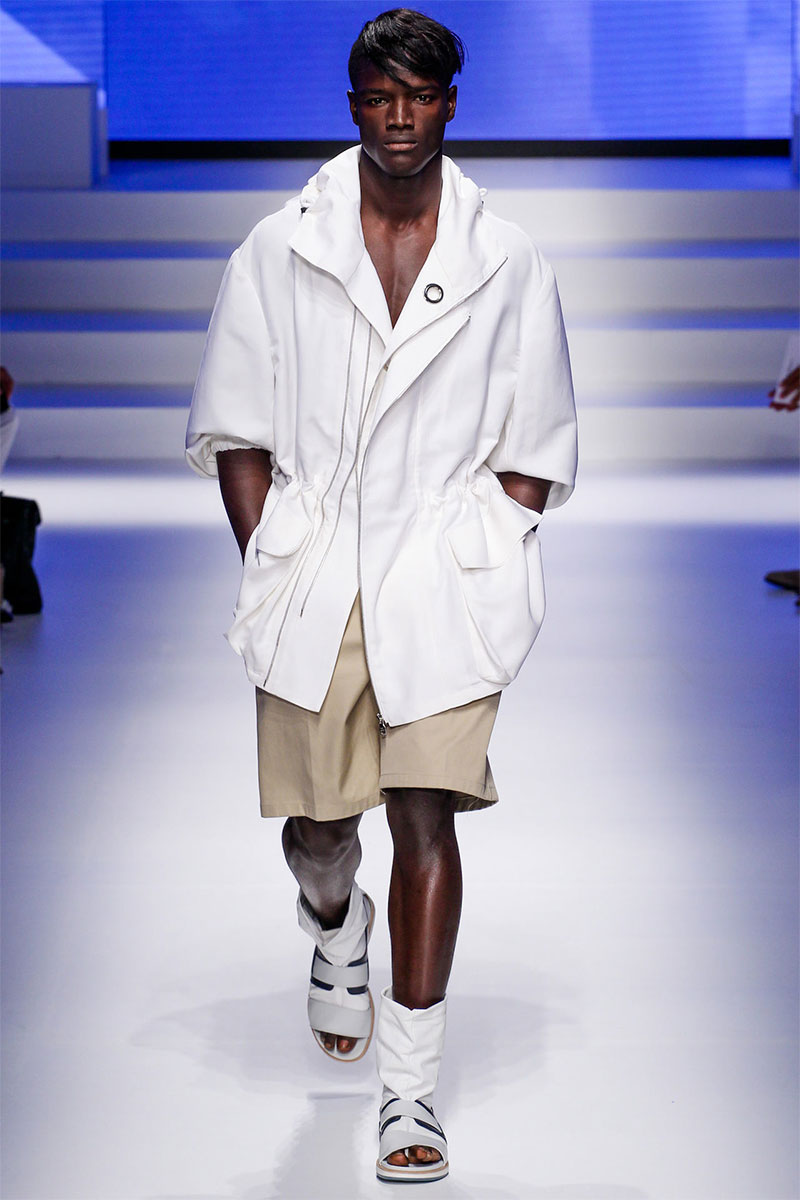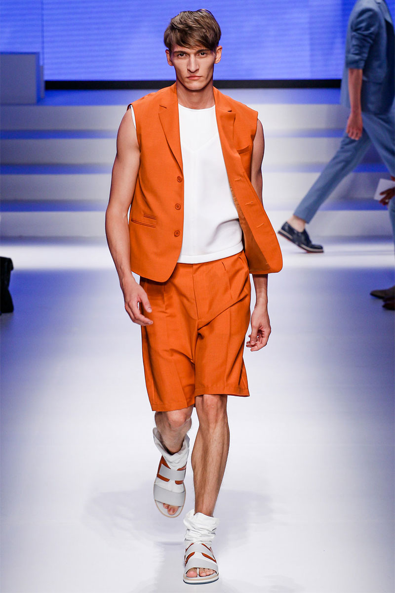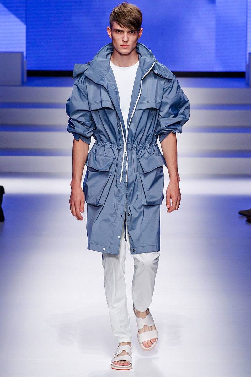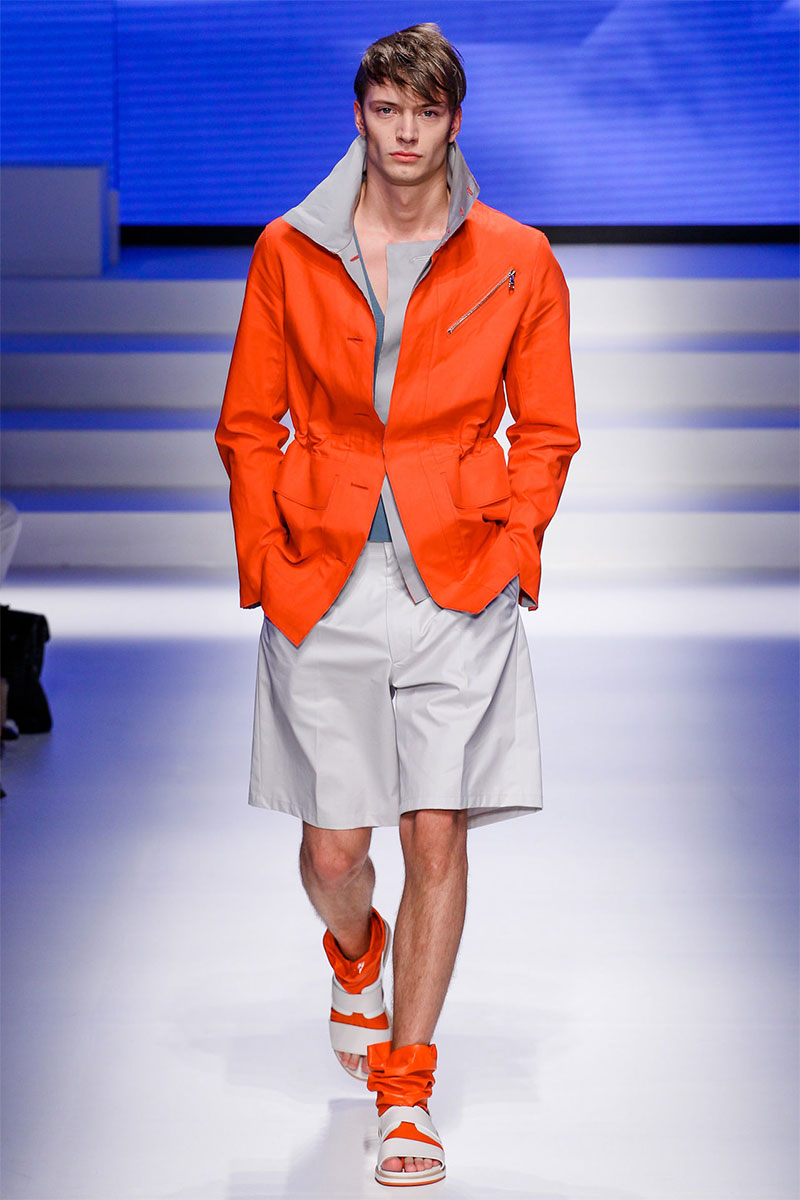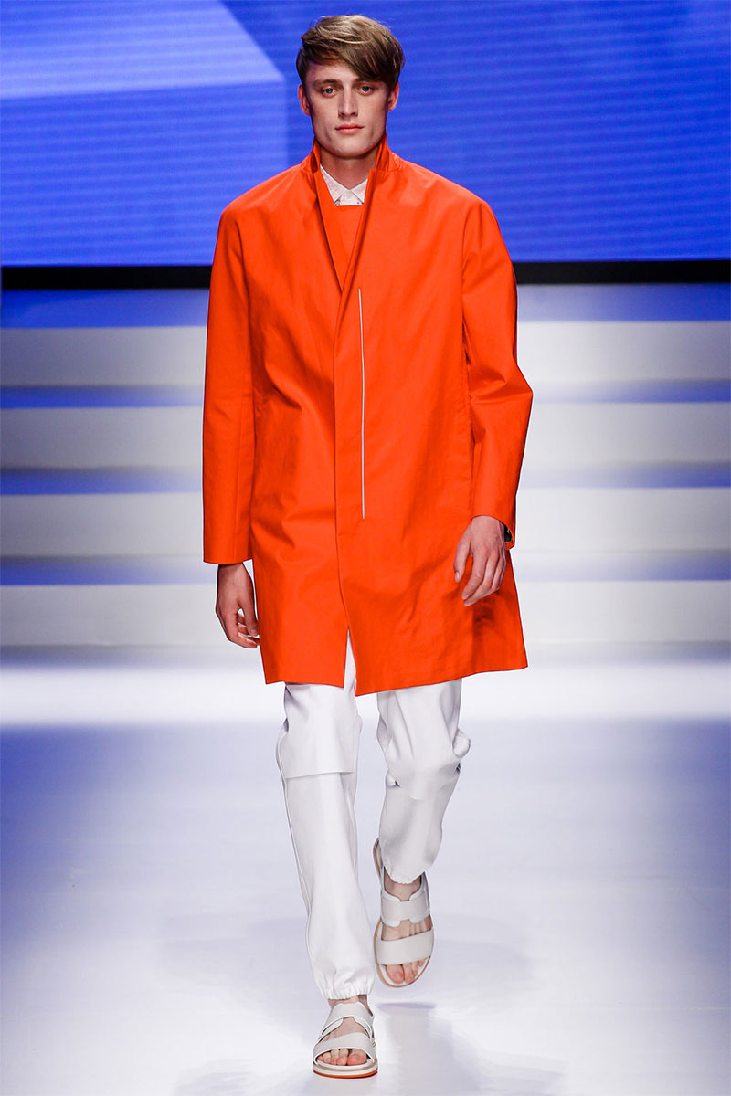 Massimiliano Giornetti presented a sporty Spring/Summer 2014 collection for Salvatore Ferragamo duringMilan Fashion Week. The numbers 1, 2, 4 and 7 were featured on several pieces.