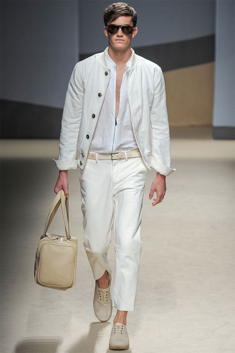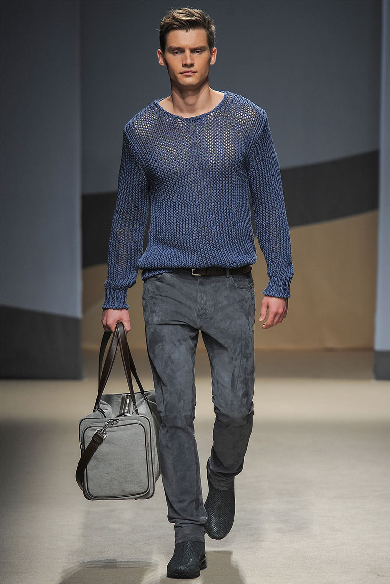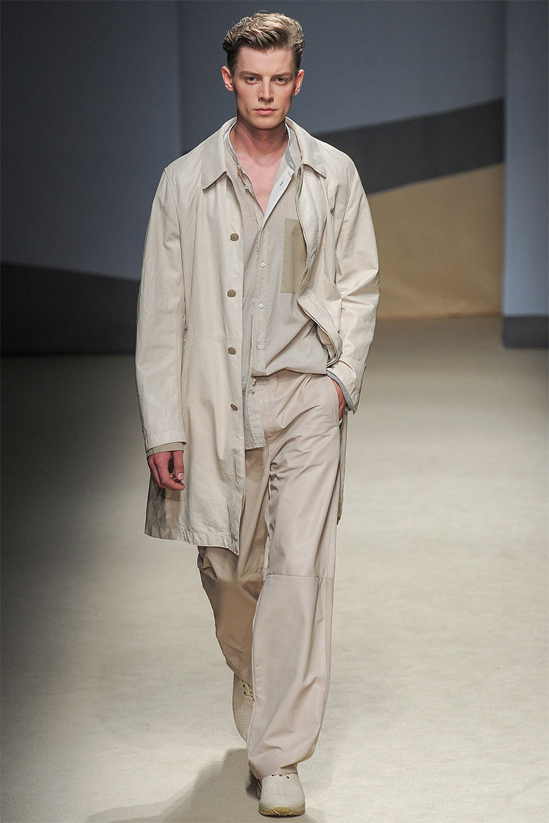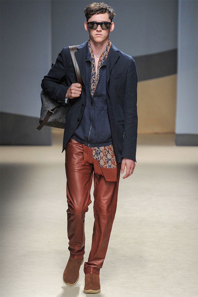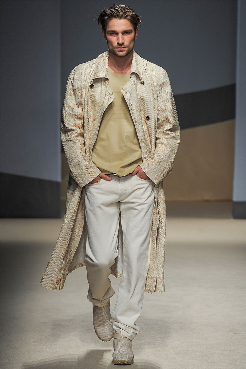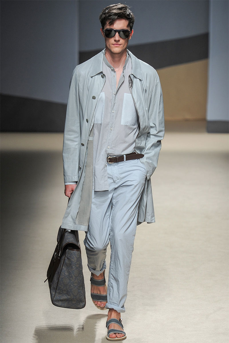 Gaia Trussardi unveiled her first collection for the Trussardi today during Milan Fashion Week. The Trussardi man undertakes the journey from the city streets to the desert for the Spring/Summer 2014 collection always carrying luxurious accessories.