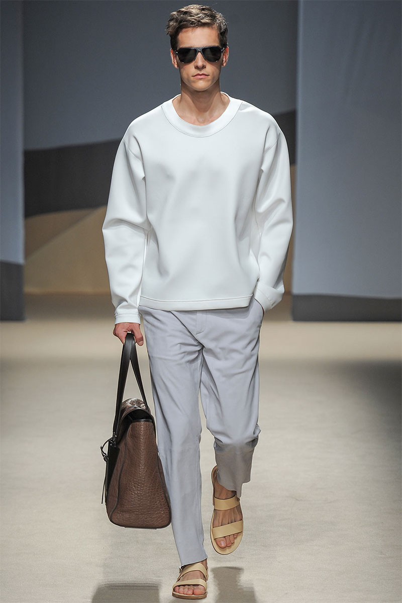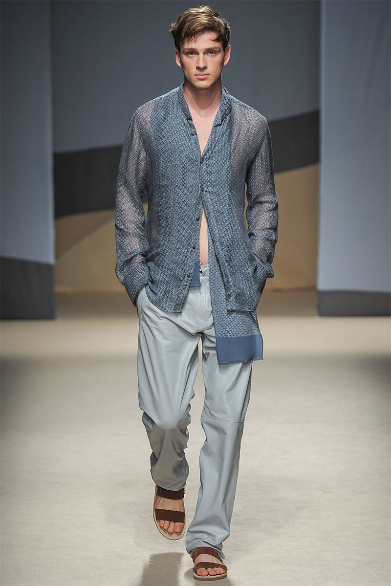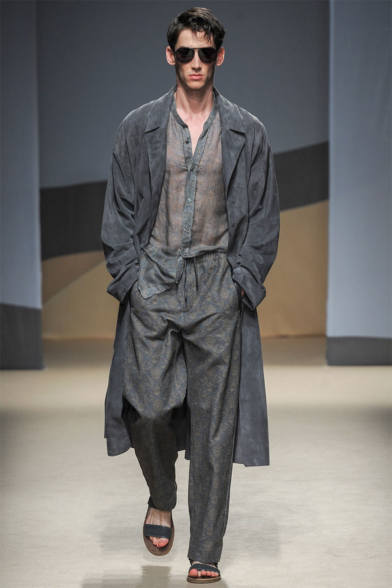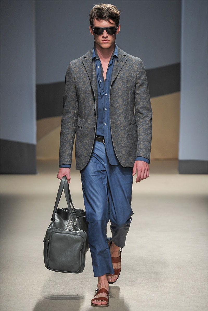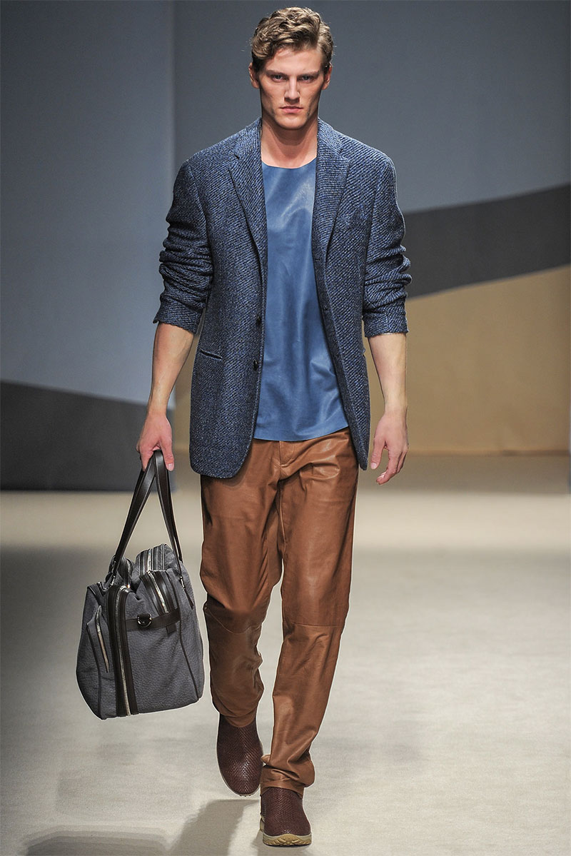 Gaia Trussardi unveiled her first collection for the Trussardi today during Milan Fashion Week. The Trussardi man undertakes the journey from the city streets to the desert for the Spring/Summer 2014 collection always carrying luxurious accessories.