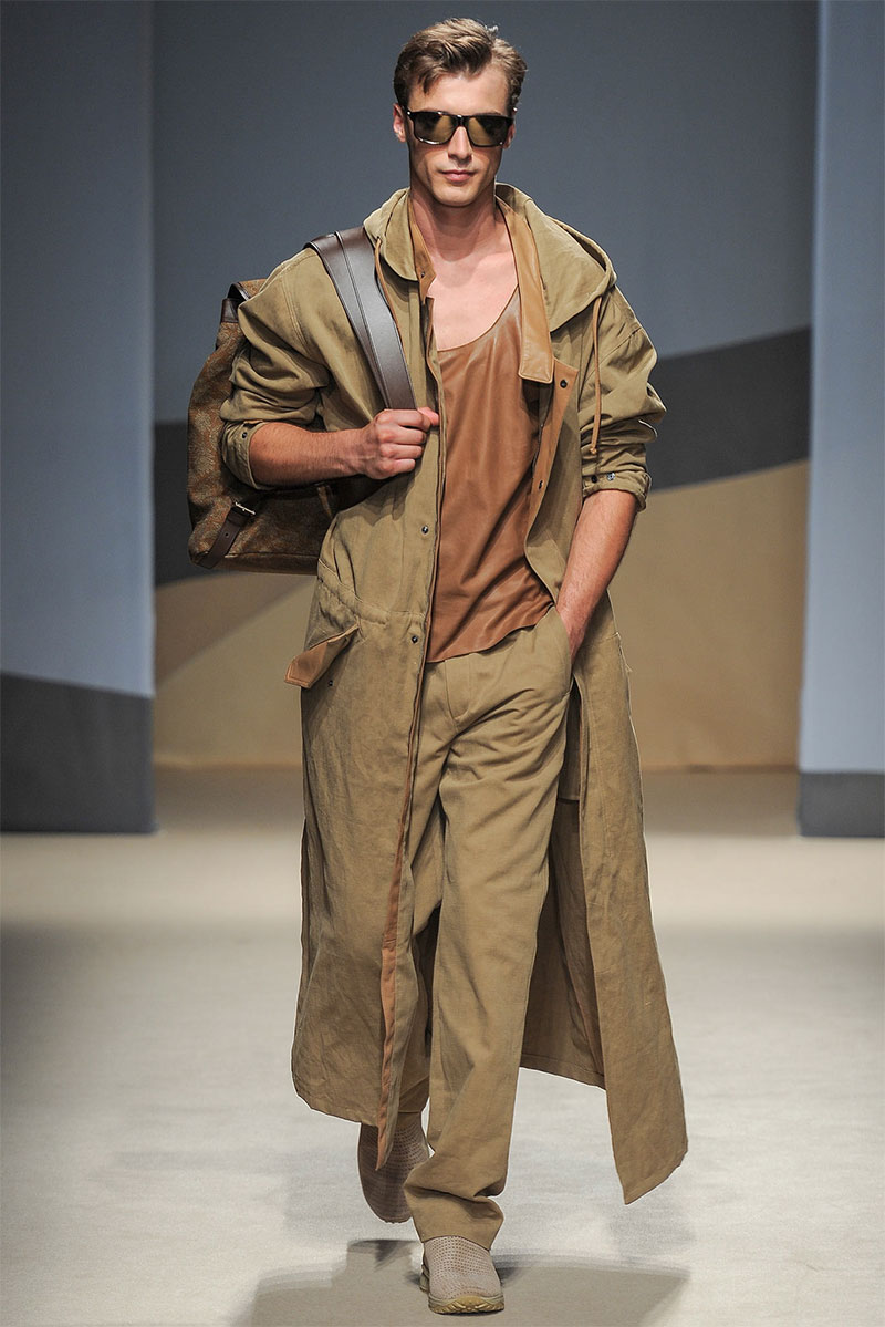 Gaia Trussardi unveiled her first collection for the Trussardi today during Milan Fashion Week. The Trussardi man undertakes the journey from the city streets to the desert for the Spring/Summer 2014 collection always carrying luxurious accessories.