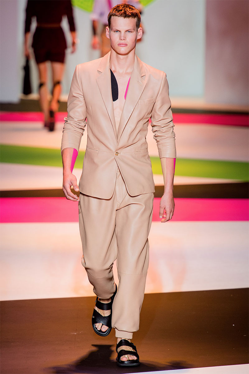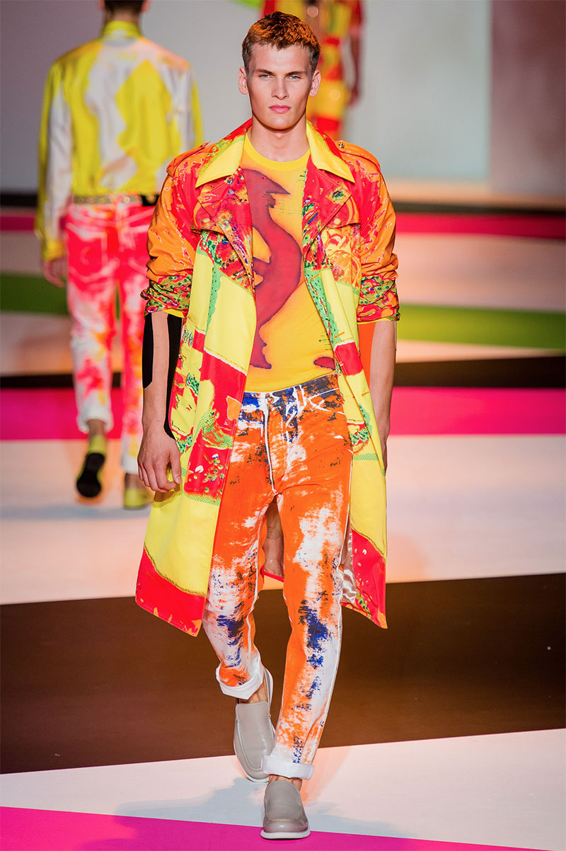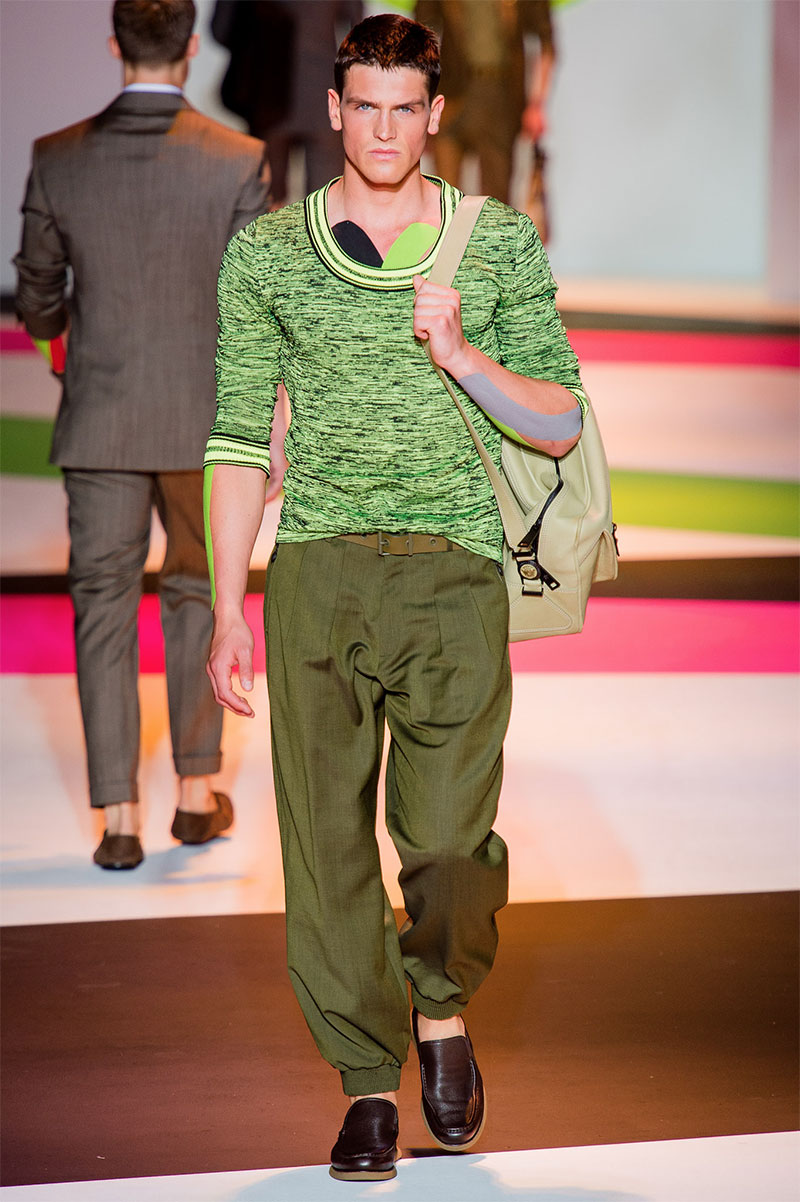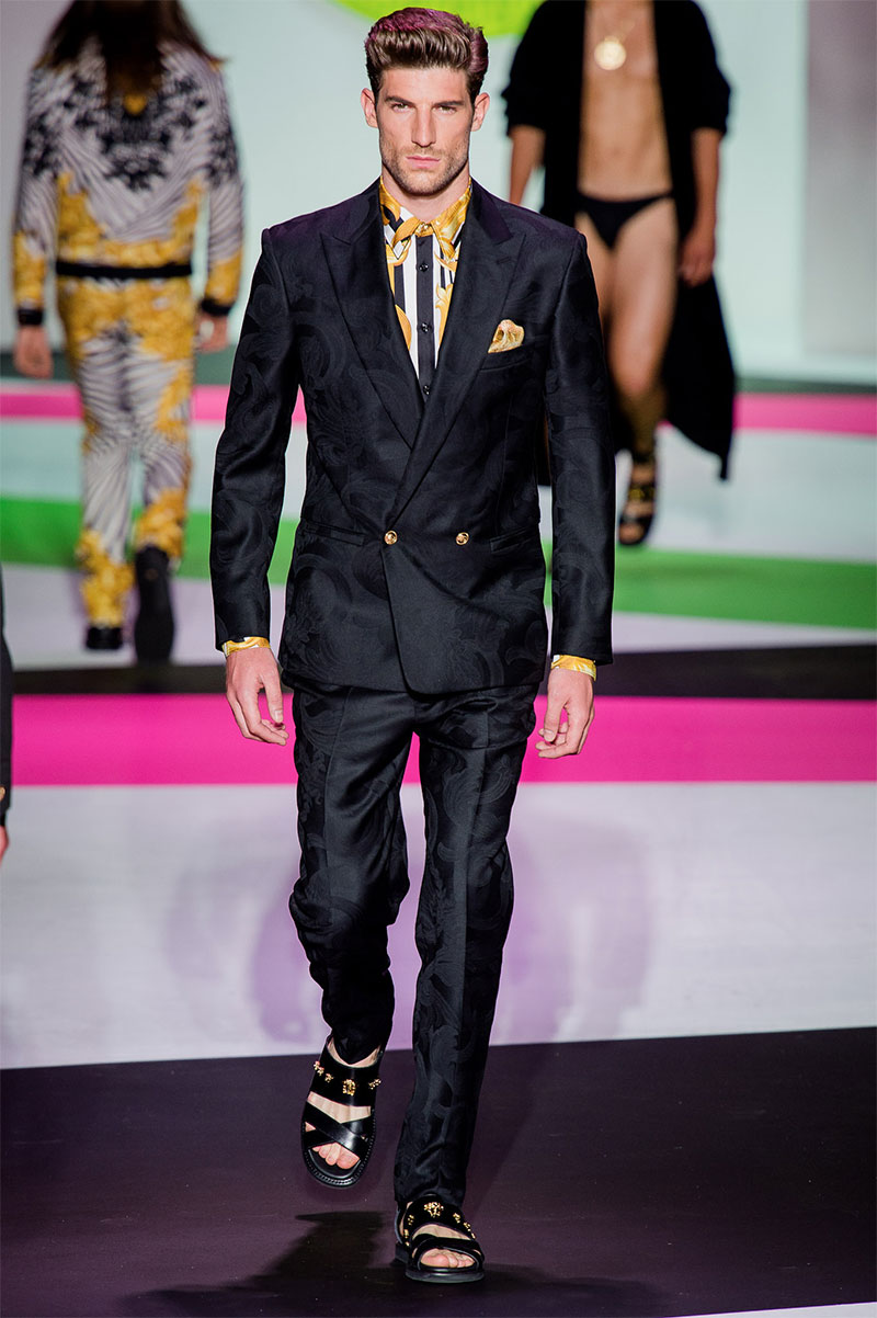 Donatella Versace unveiled her latest Spring/Summer 2014 collection during Milan Fashion Week. The flamboyant collection featured a neat and precise silhouette with light and luxurious tailoring, fluorescent colors and extravagant prints.