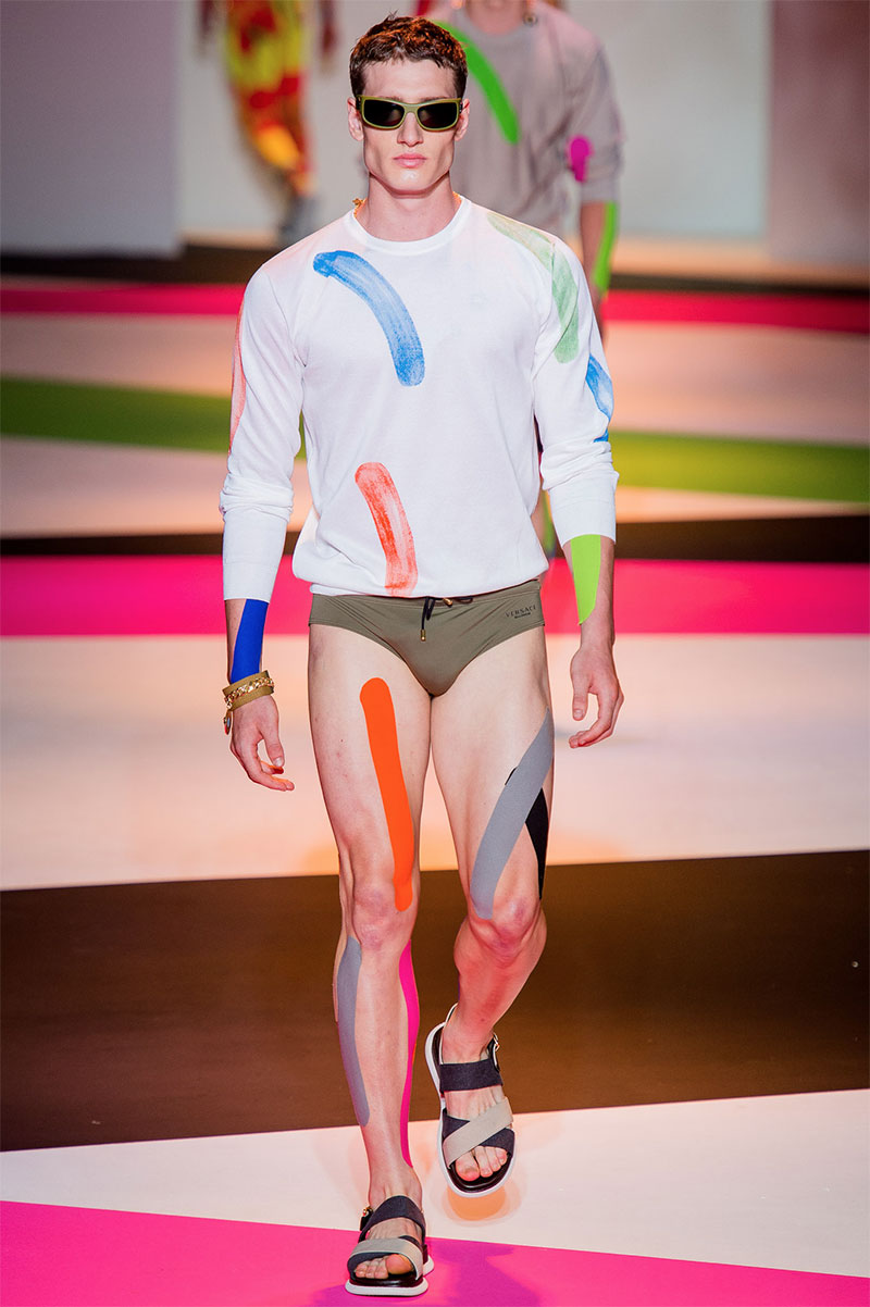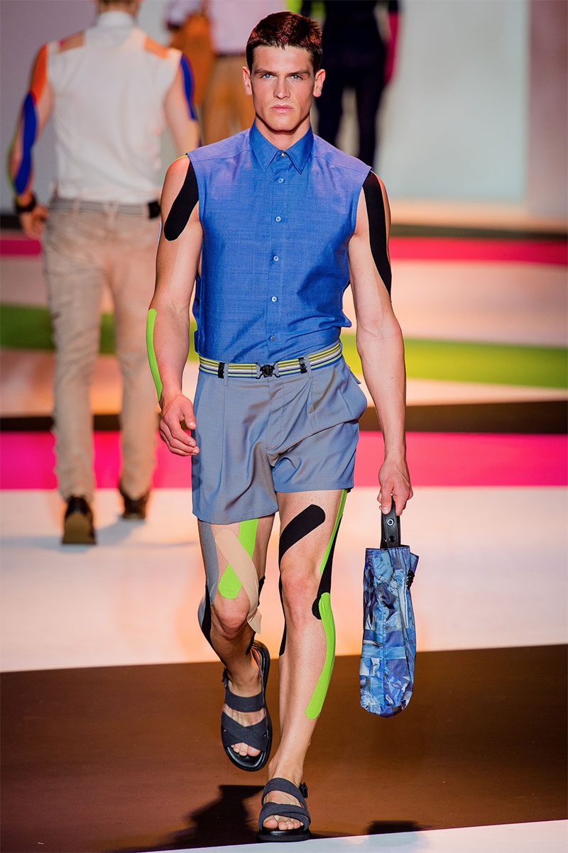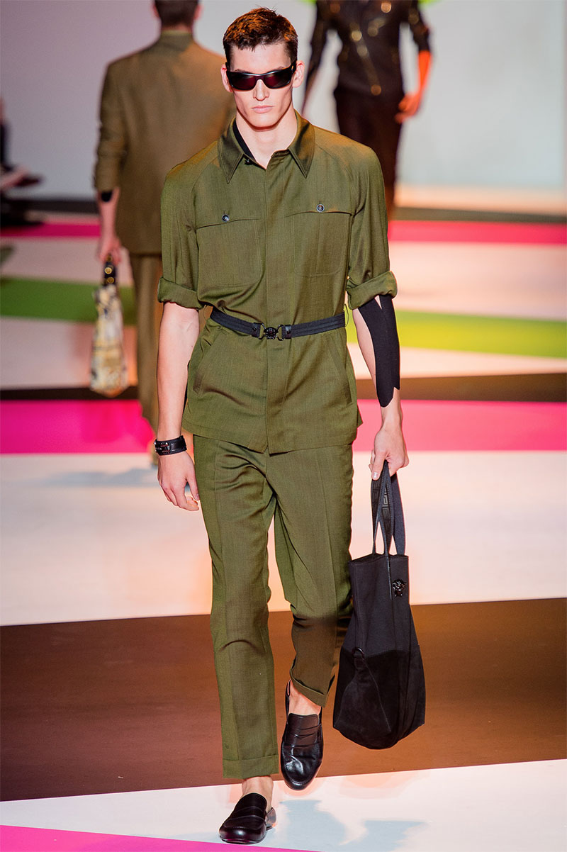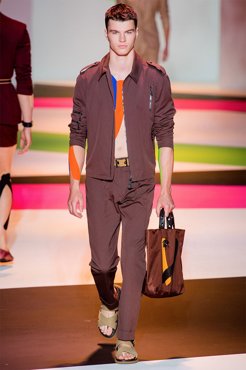 Donatella Versace unveiled her latest Spring/Summer 2014 collection during Milan Fashion Week. The flamboyant collection featured a neat and precise silhouette with light and luxurious tailoring, fluorescent colors and extravagant prints.