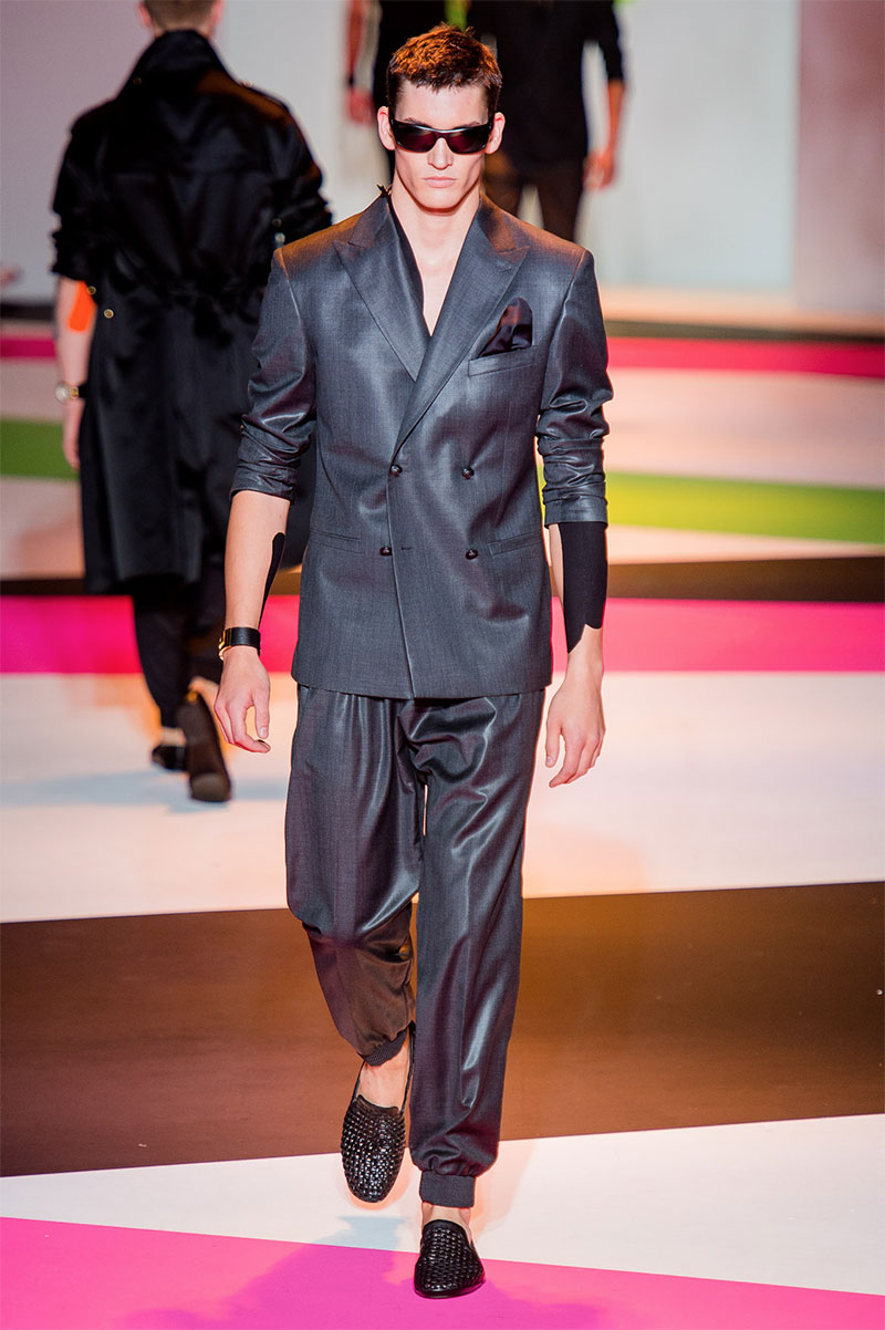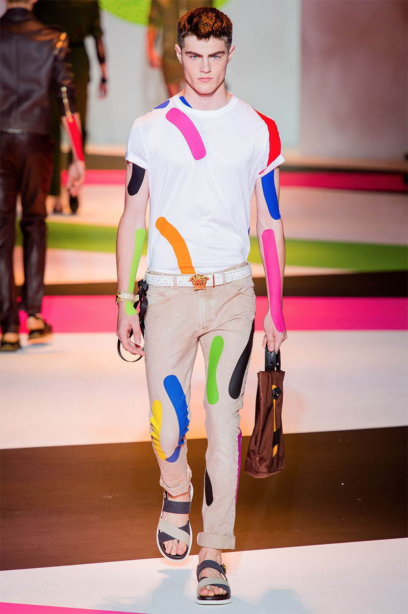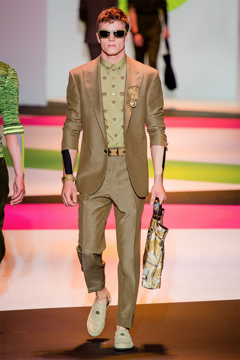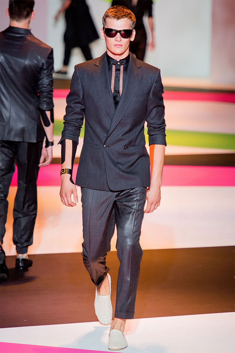 Donatella Versace unveiled her latest Spring/Summer 2014 collection during Milan Fashion Week. The flamboyant collection featured a neat and precise silhouette with light and luxurious tailoring, fluorescent colors and extravagant prints.