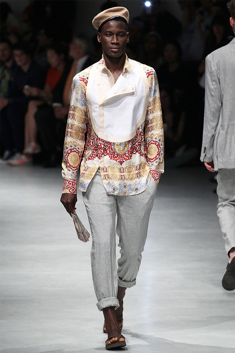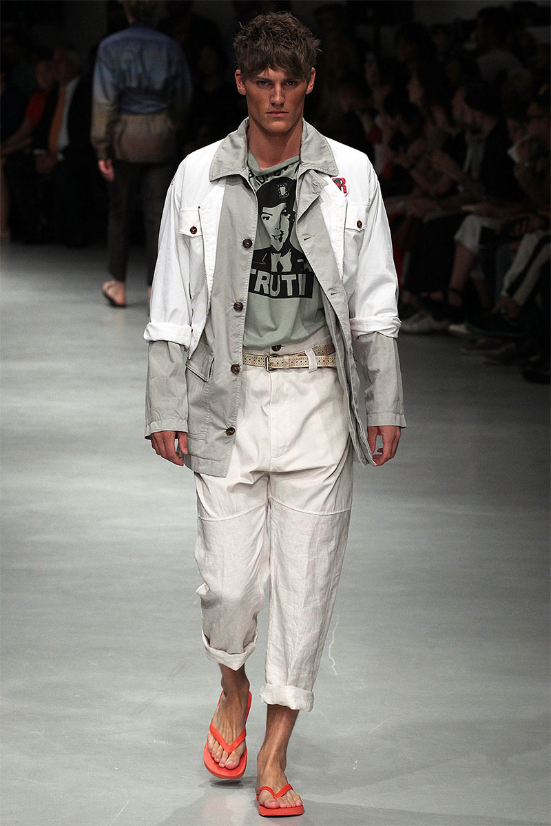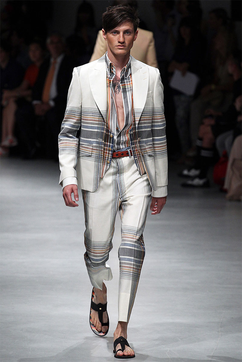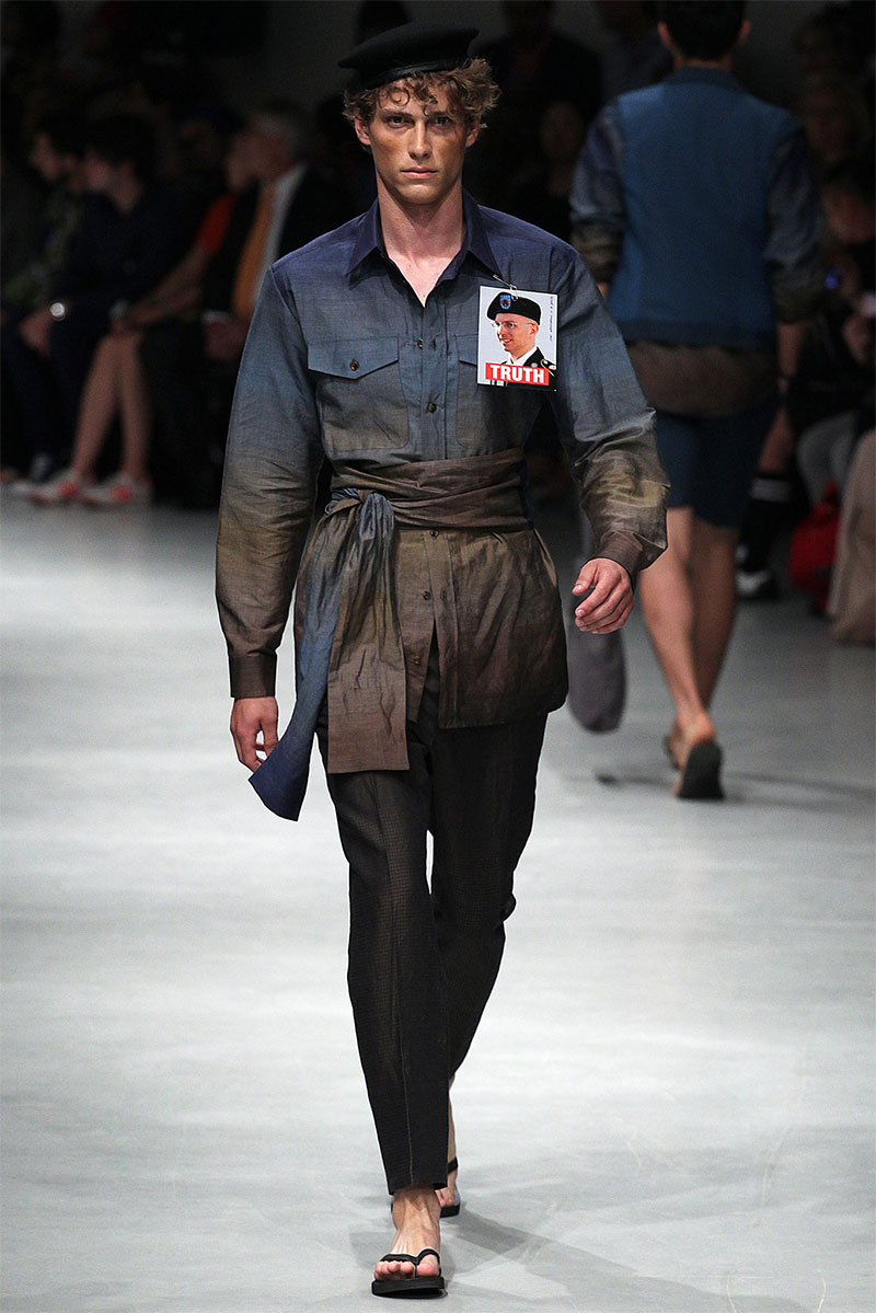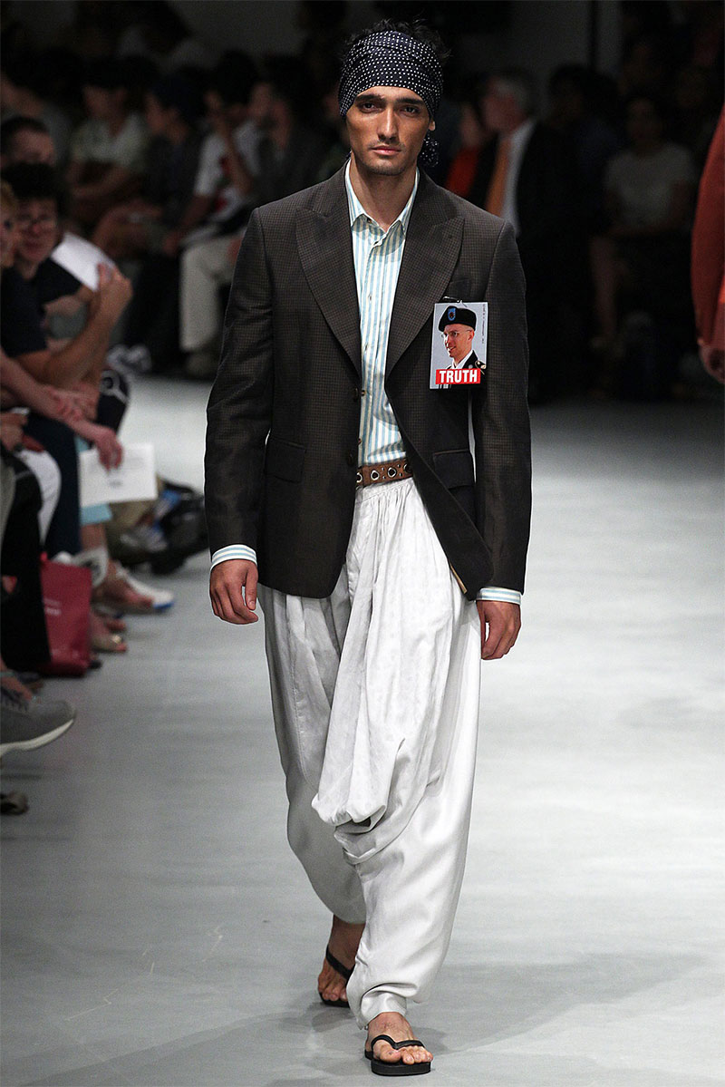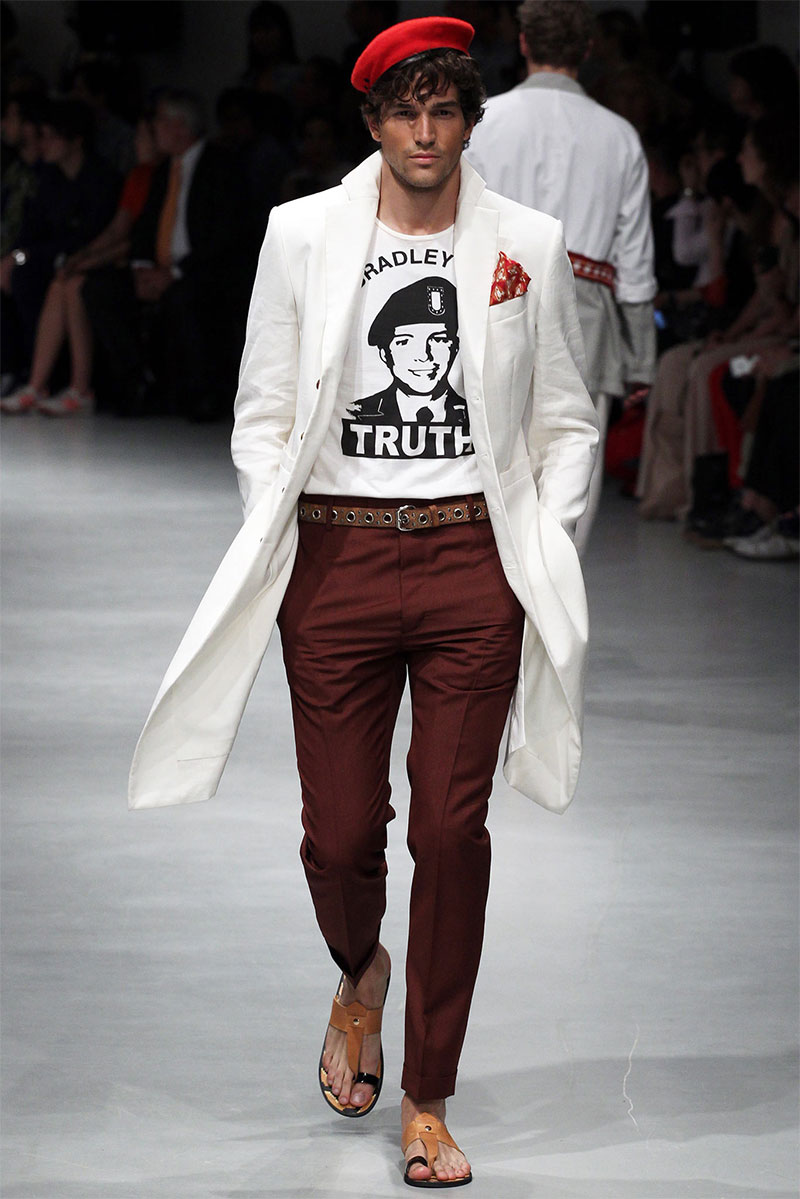 Vivienne Westwood unveiled her Spring/Summer 2014 collection during Milan Fashion Week, featuring indian influences, beautiful patterns and well tailored pieces. Vivienne also paid hommage to US Army soldier Bradley Manning, who was arrested in 2010 on suspicion of having made public classified material through the website WikiLeaks.