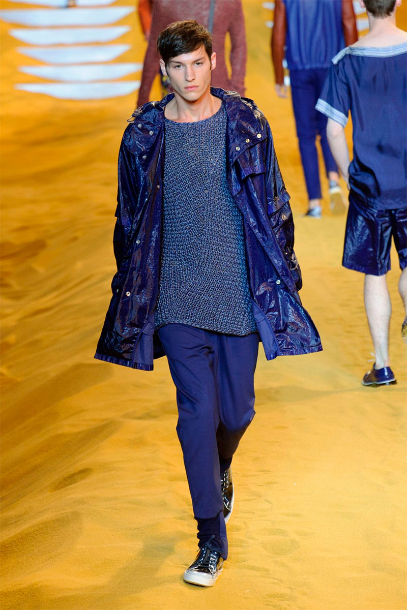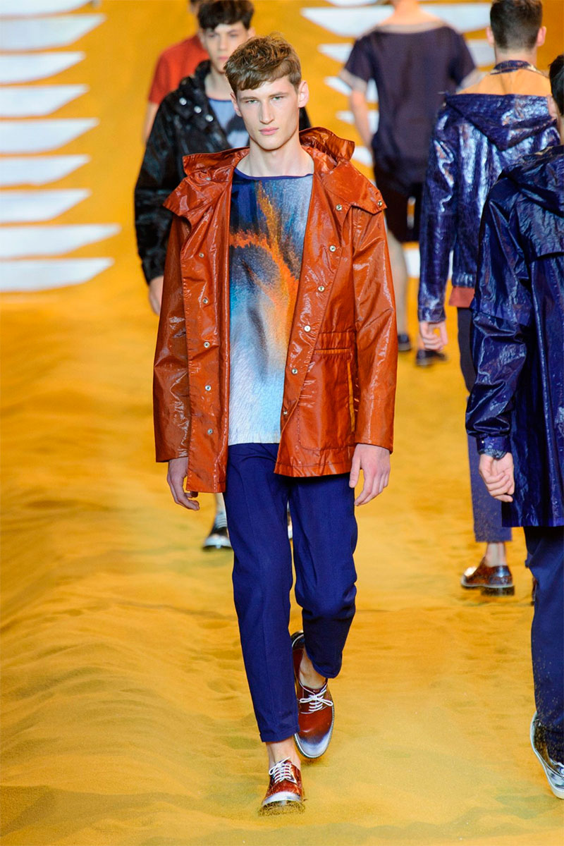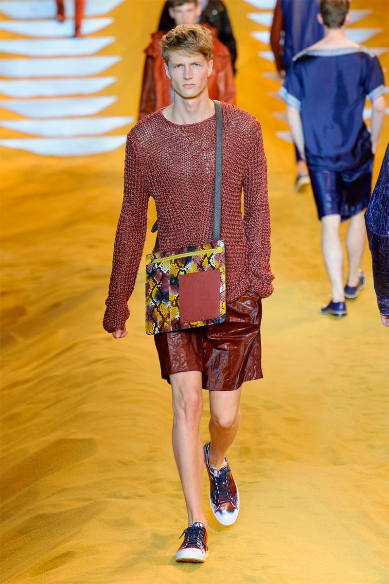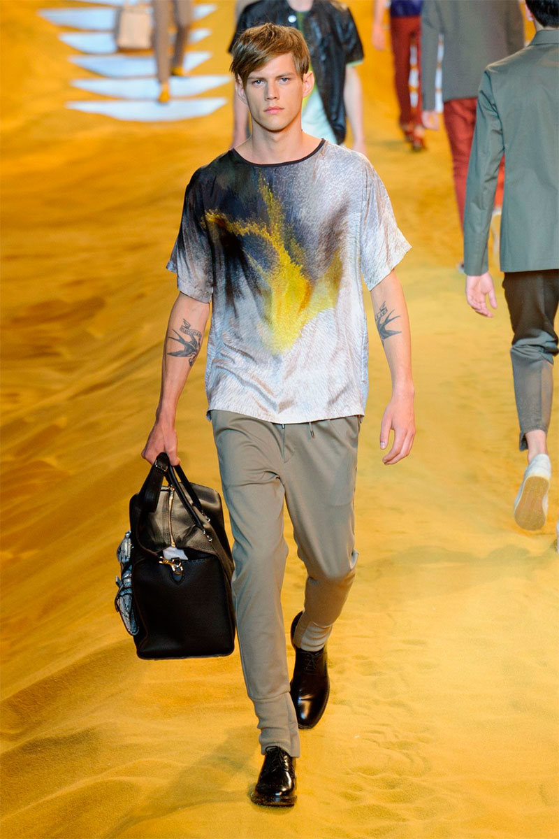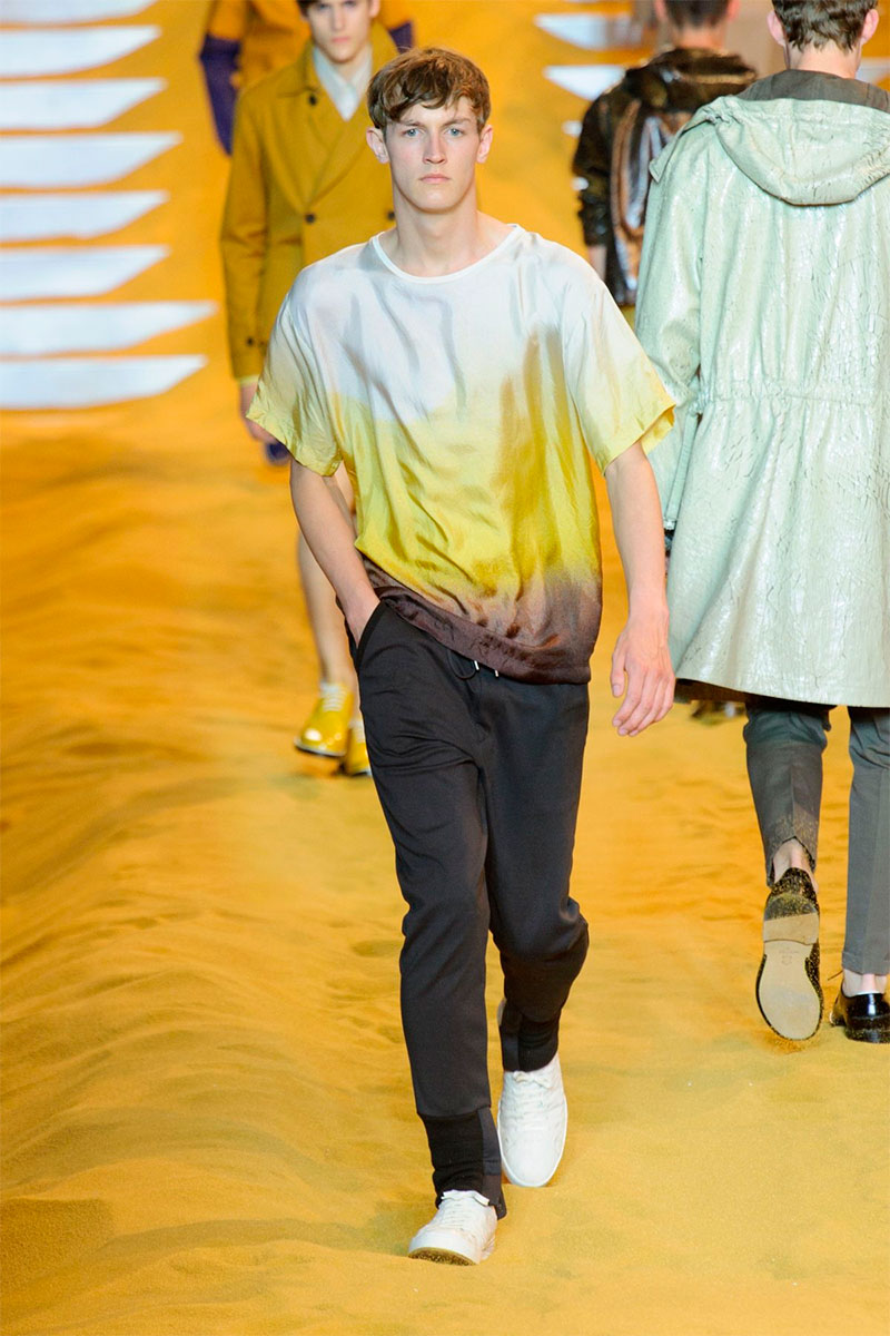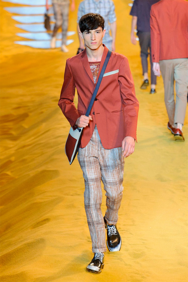 Fendi showed a sophisticated Spring/Summer 2014 collection full of rich materials, during Milan Fashion Week. Desertification. Yellow sand everywhere. The fury of a blinding sun in full blast, burning everything out, drying and cracking surfaces, morphing colors, consuming matter. The new Fendi Men’s Collection delves into another deep extreme. That’s what contemporary life is all about, after all: from one peak to the other, nothing in between. The Fendi man is fit and ready for any situation: an unfussy pragmatist, he acts and delivers. Period.