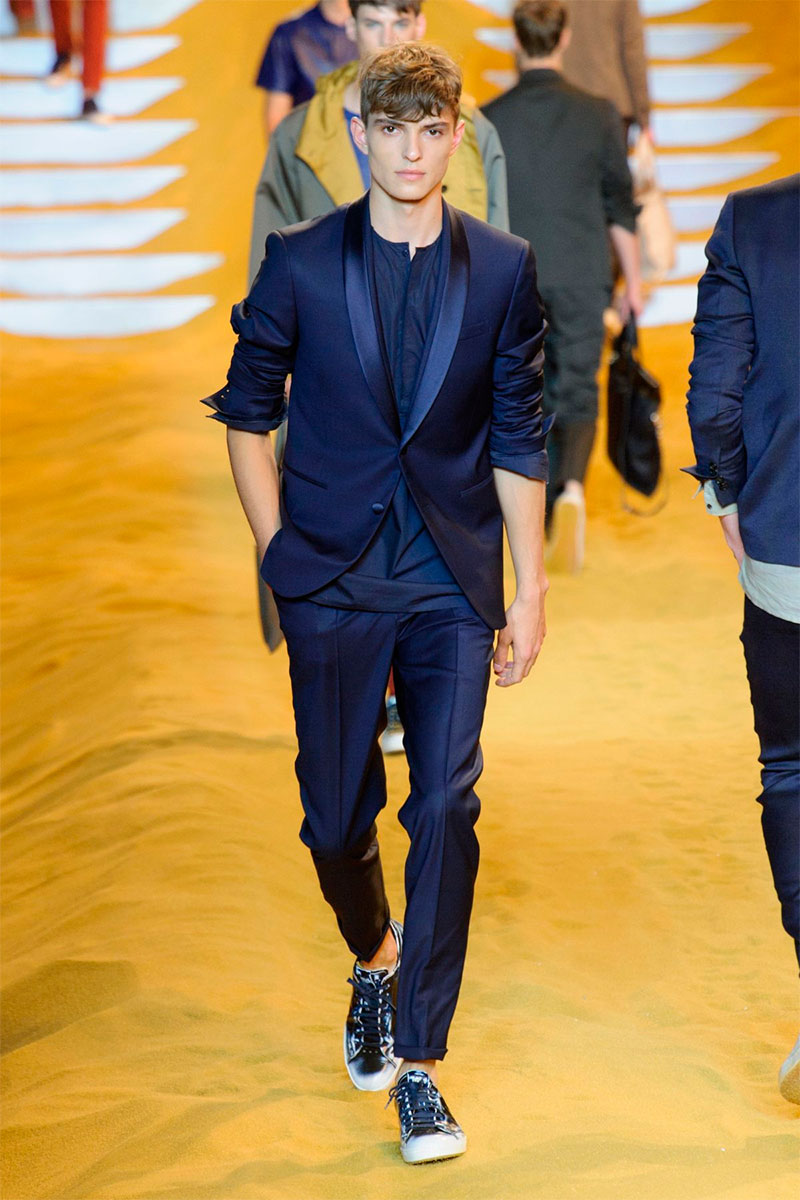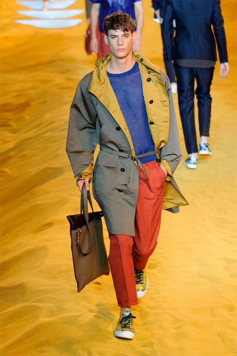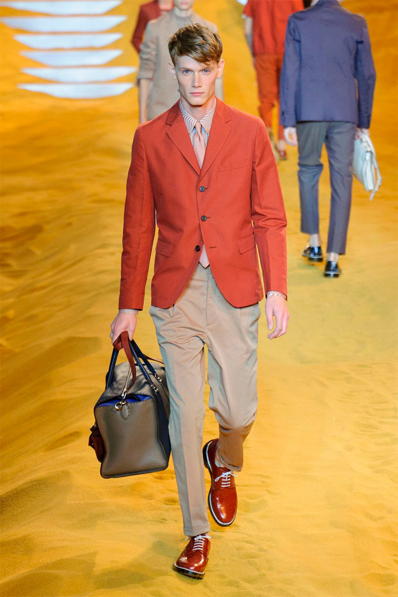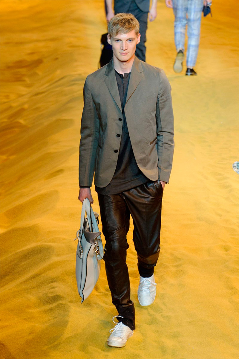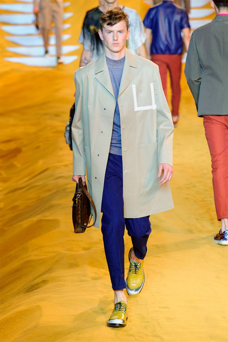 Fendi showed a sophisticated Spring/Summer 2014 collection full of rich materials, during Milan Fashion Week. Desertification. Yellow sand everywhere. The fury of a blinding sun in full blast, burning everything out, drying and cracking surfaces, morphing colors, consuming matter. The new Fendi Men’s Collection delves into another deep extreme. That’s what contemporary life is all about, after all: from one peak to the other, nothing in between. The Fendi man is fit and ready for any situation: an unfussy pragmatist, he acts and delivers. Period.