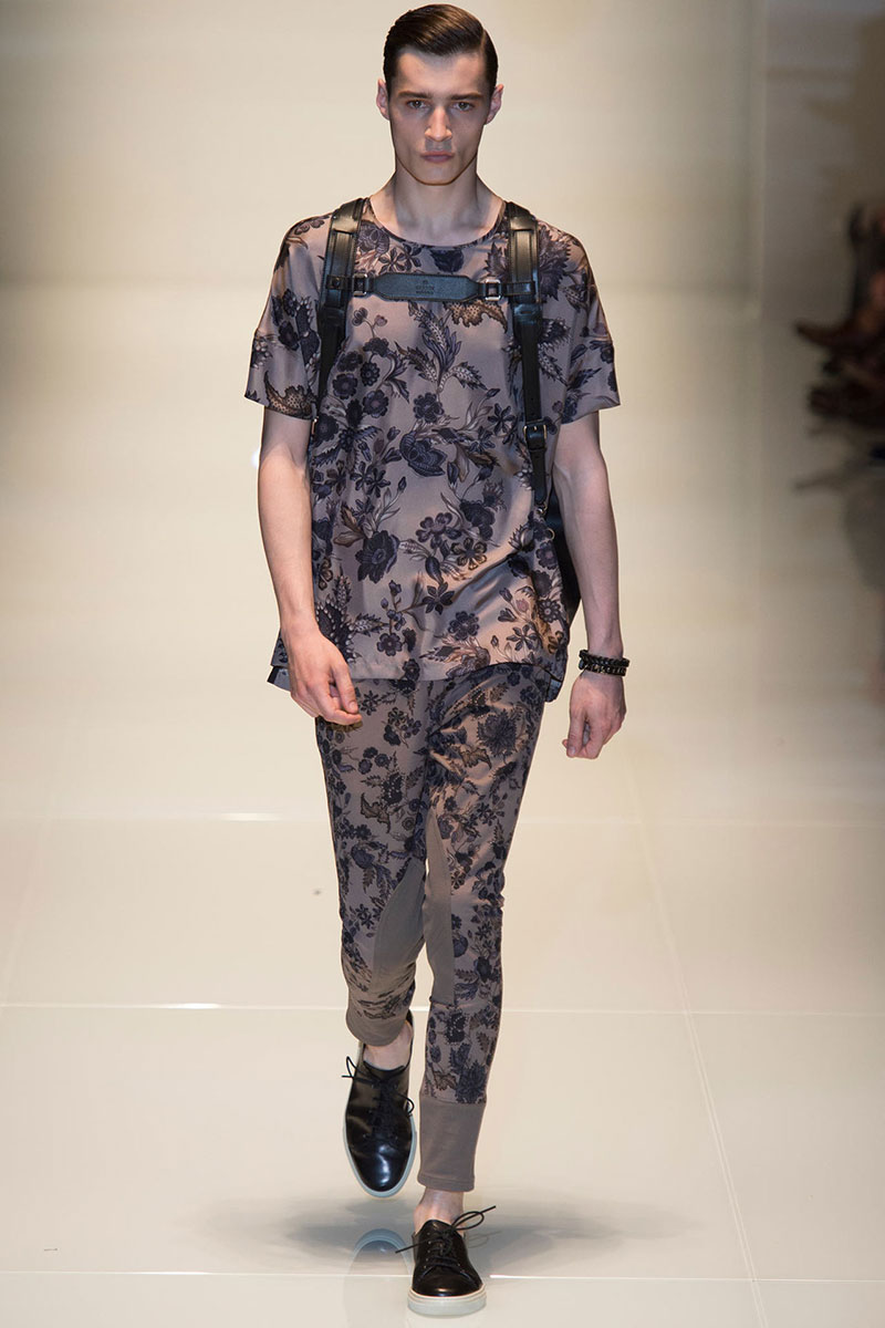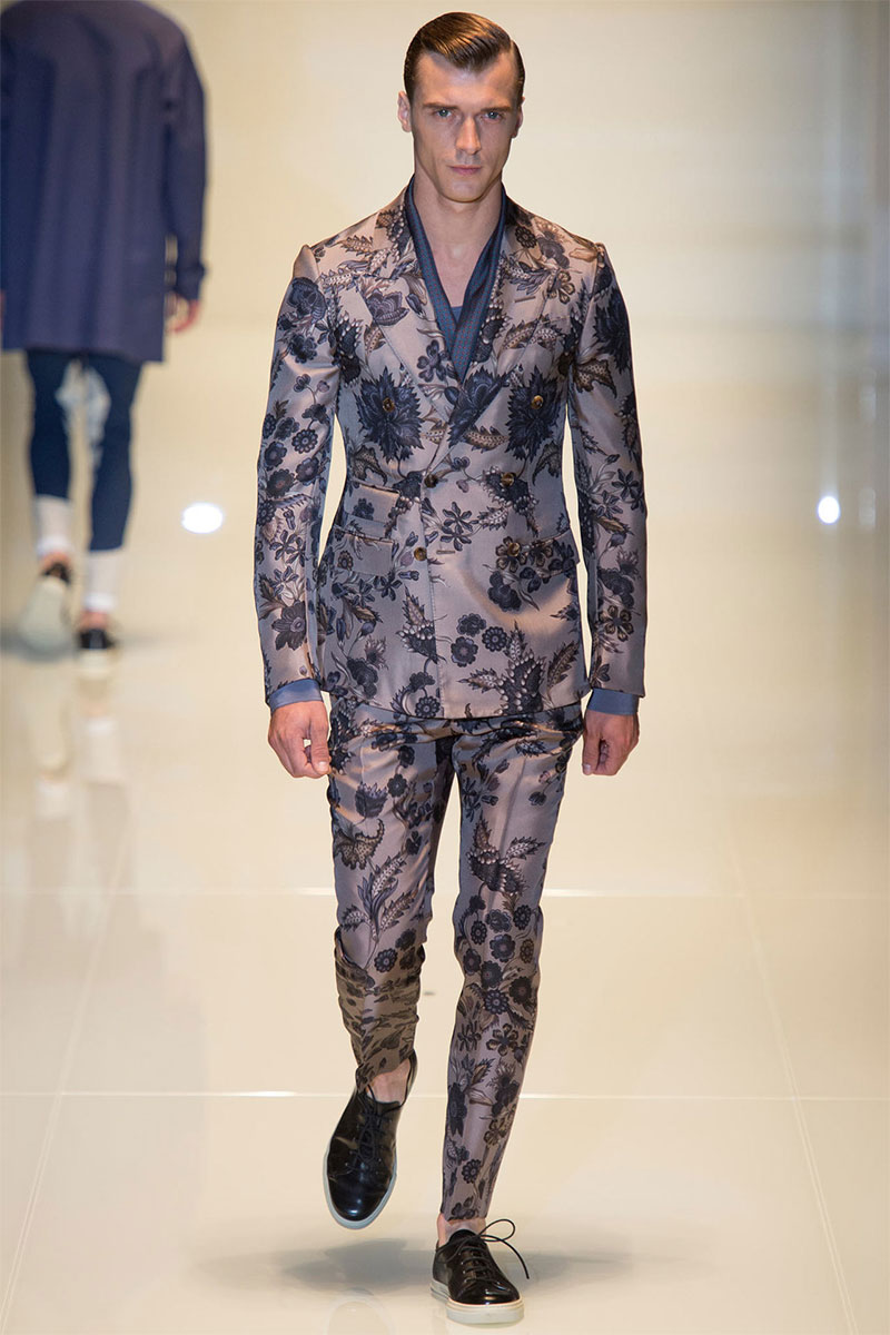 Frida Giannini presented her Spring/Summer 2014 collection for Gucci during Milan Fashion Week, featuring modern athleticism and sleek designs with 8th-century floral prints.