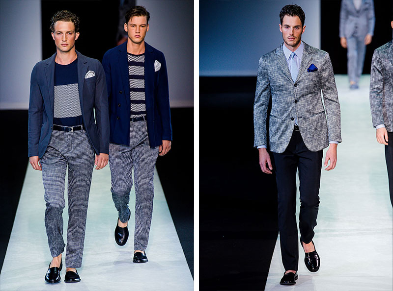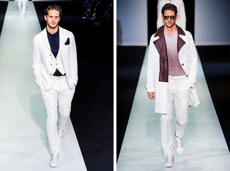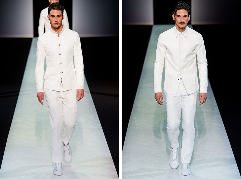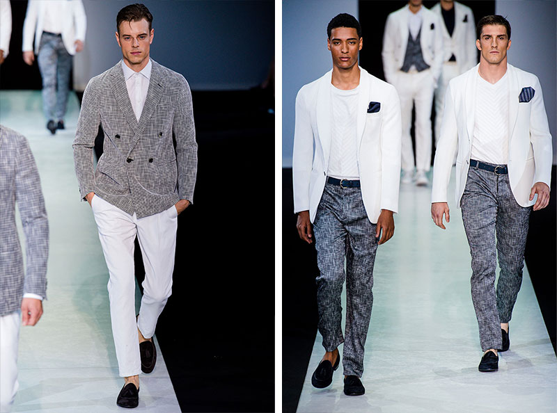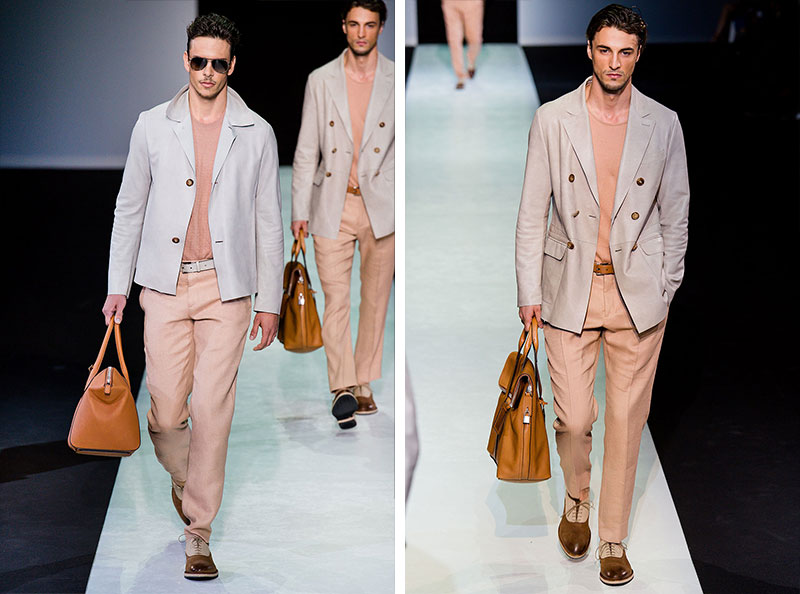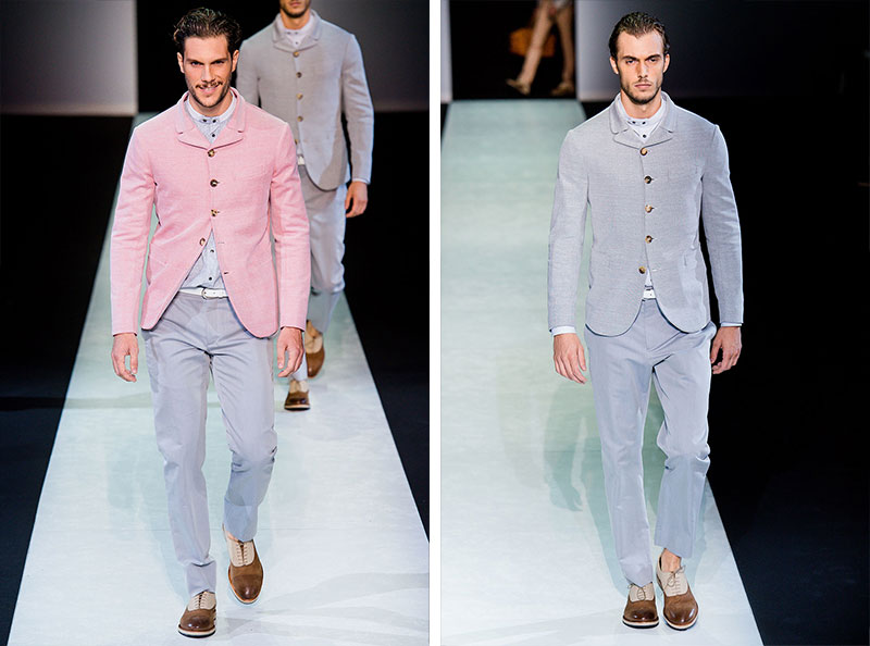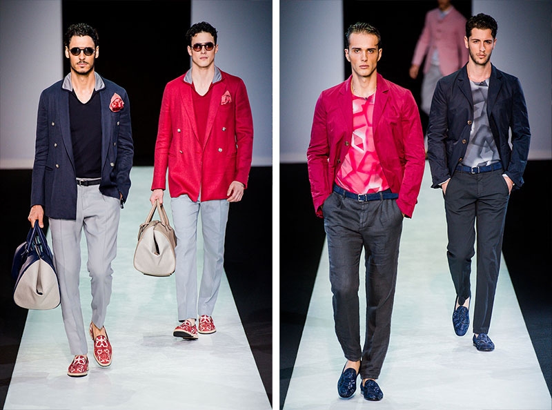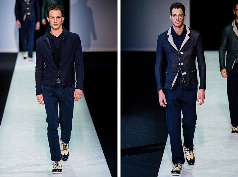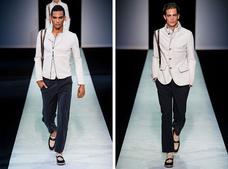 Giorgio Armani presented his Spring/Summer 2014 collection during Milan Fashion Week. Sportswear is visible throughout the entire collection, which combines the finest materials with sporty details. A metropolitan feel of rigour is evident in shapes that are sleekly refitted, including slimmer pants that lend freshness to the look.