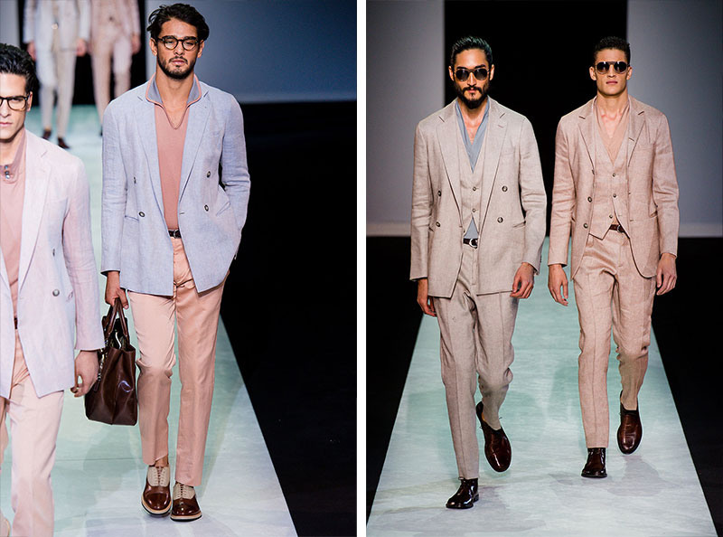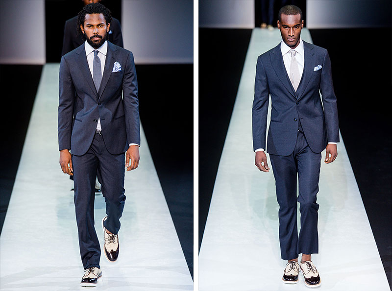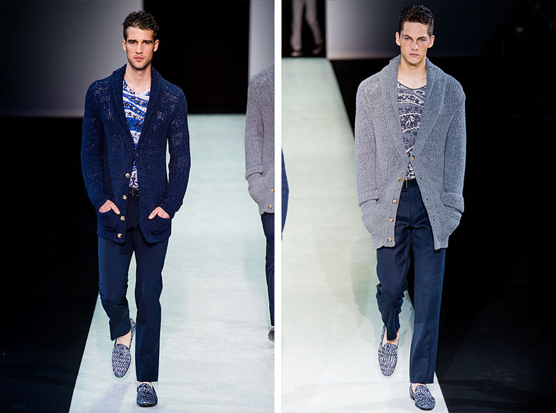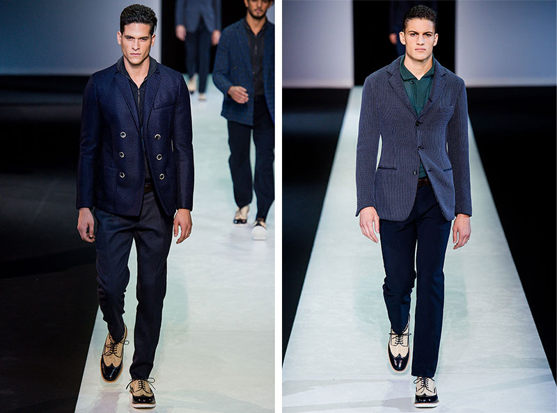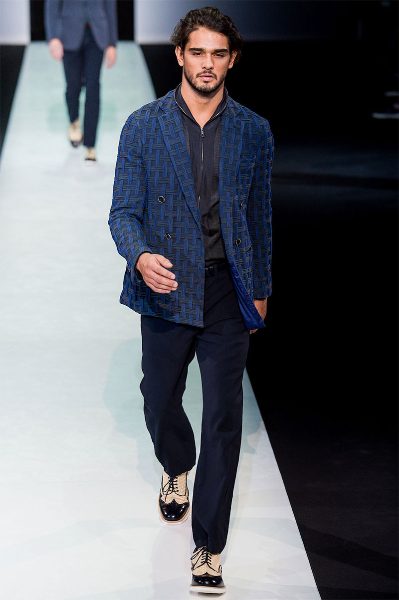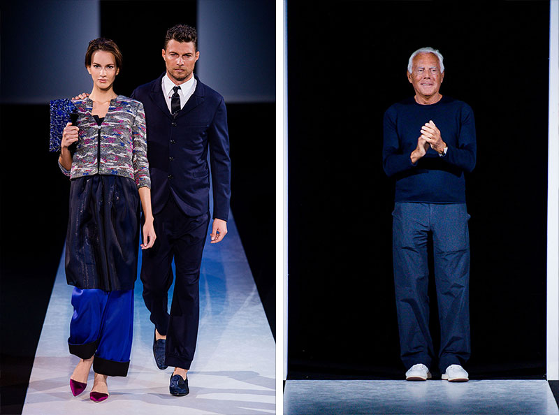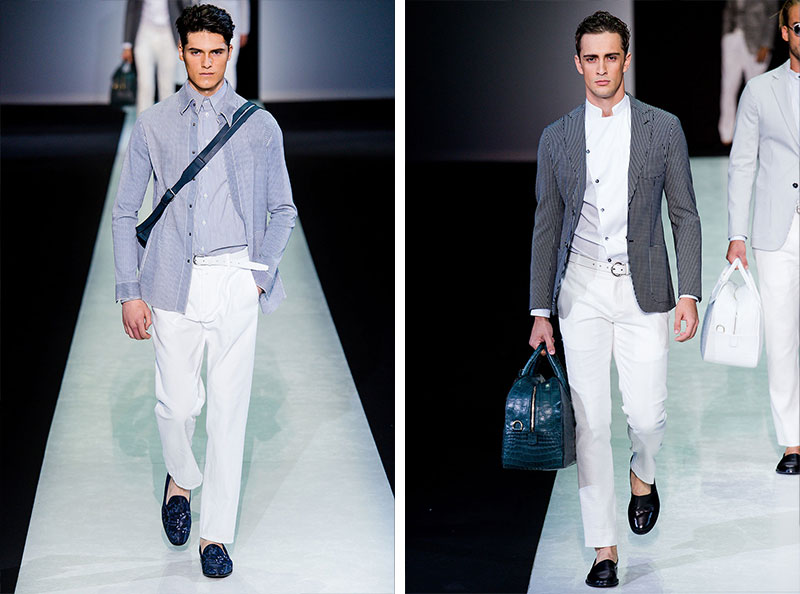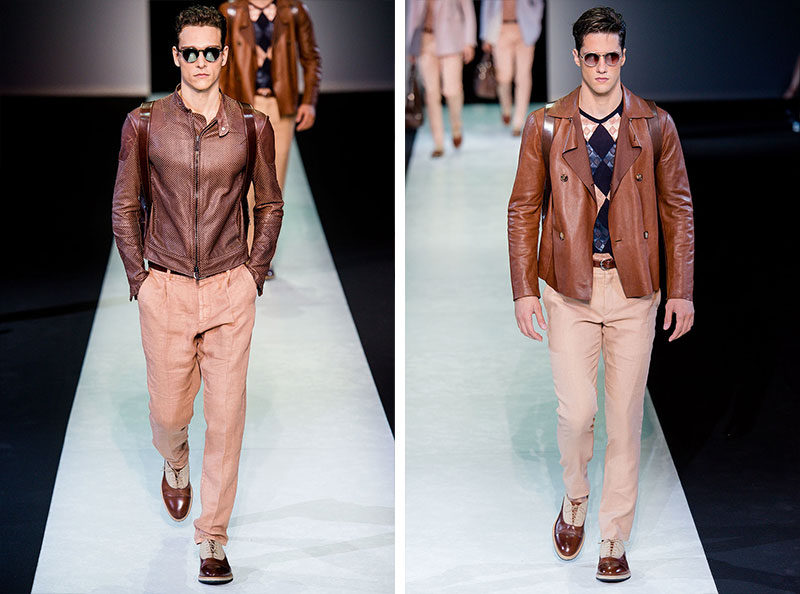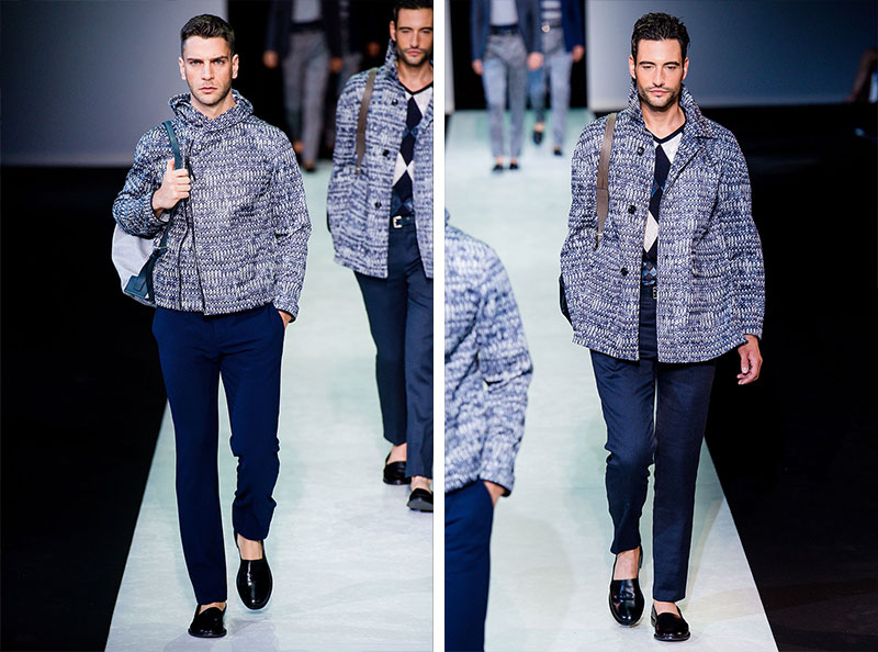 Giorgio Armani presented his Spring/Summer 2014 collection during Milan Fashion Week. Sportswear is visible throughout the entire collection, which combines the finest materials with sporty details. A metropolitan feel of rigour is evident in shapes that are sleekly refitted, including slimmer pants that lend freshness to the look.