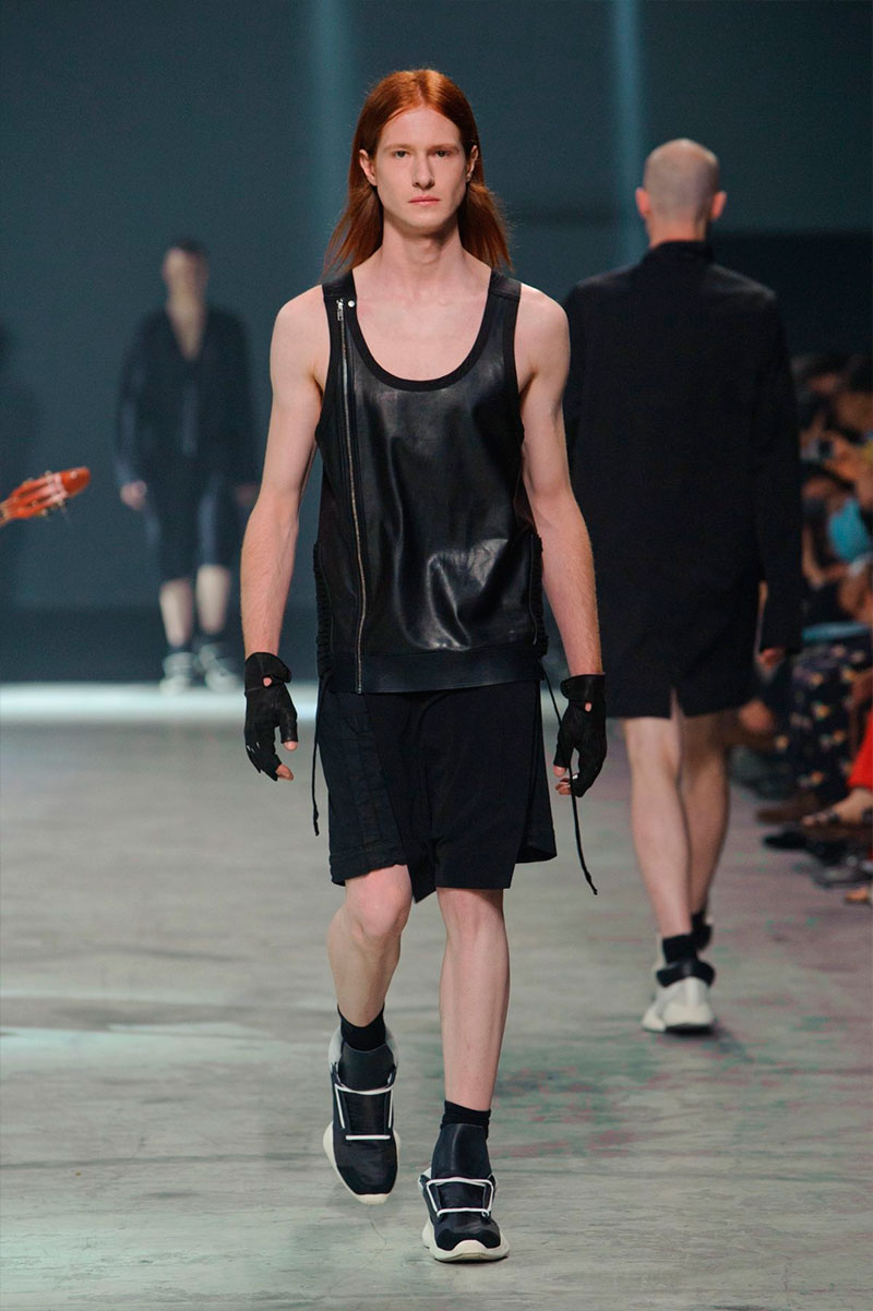 Rick Owens invited a punk band called Winny Puhh to perform in the center of his Spring/Summer 2014 runway during Paris Fashion Week. The collection was dark, with asymmetrical pieces and leather.
