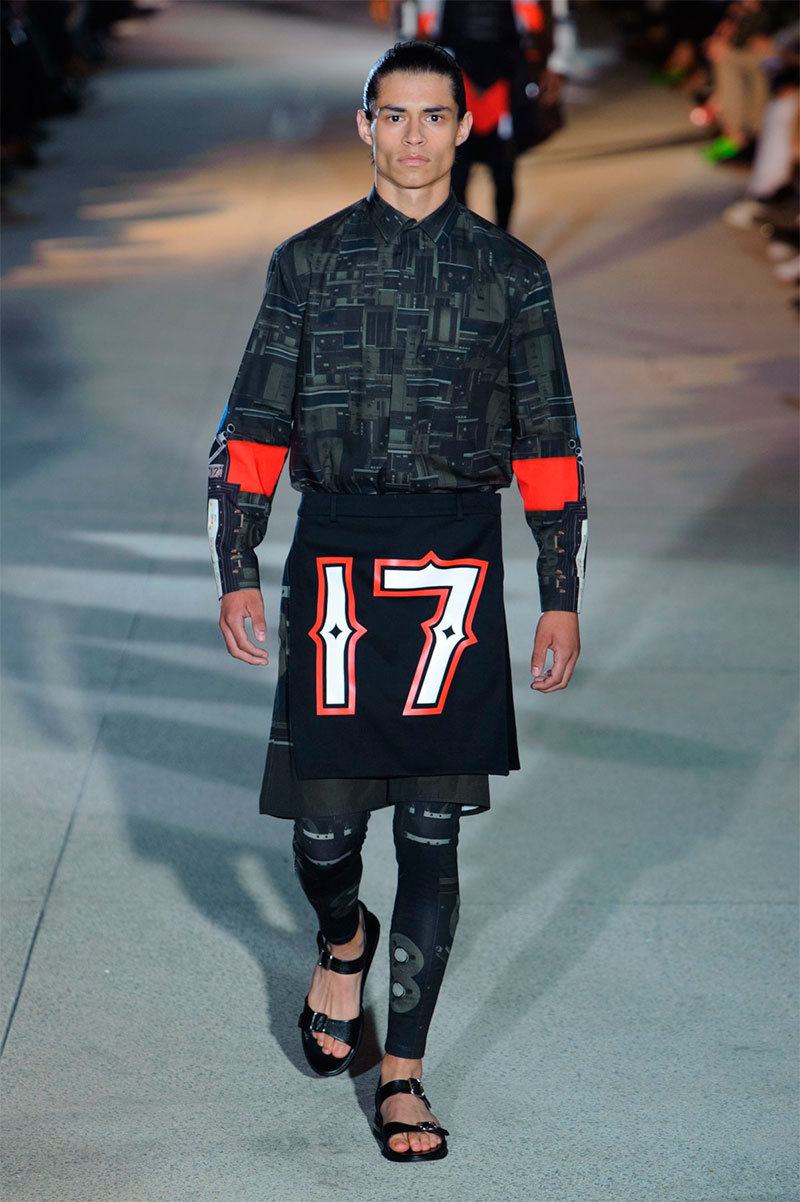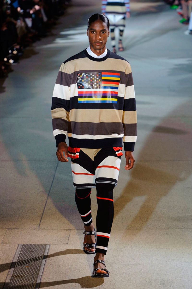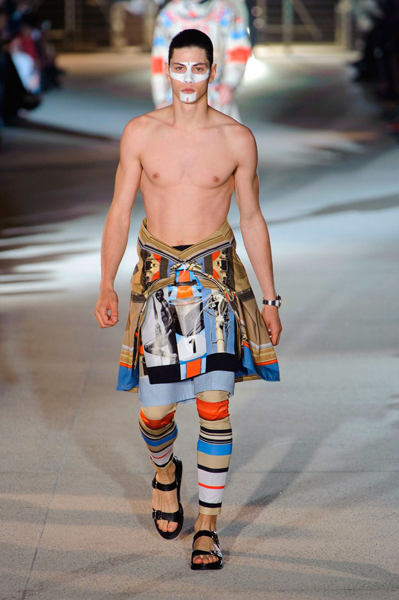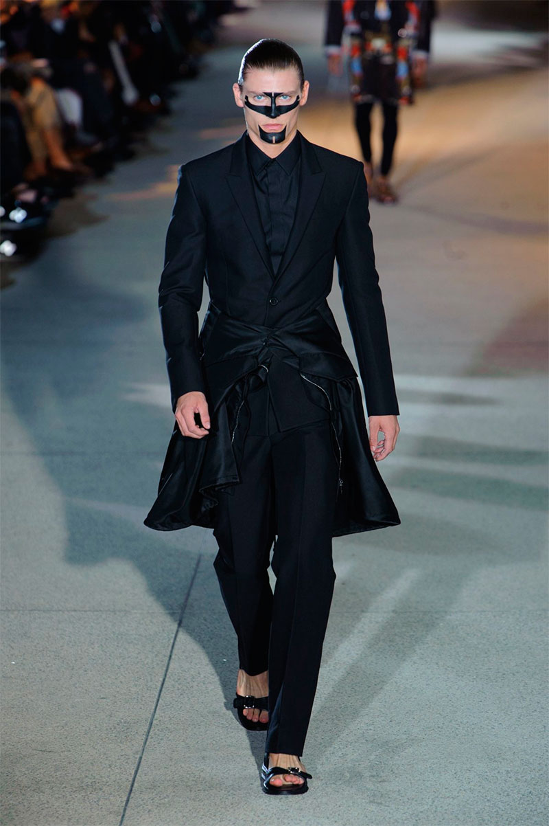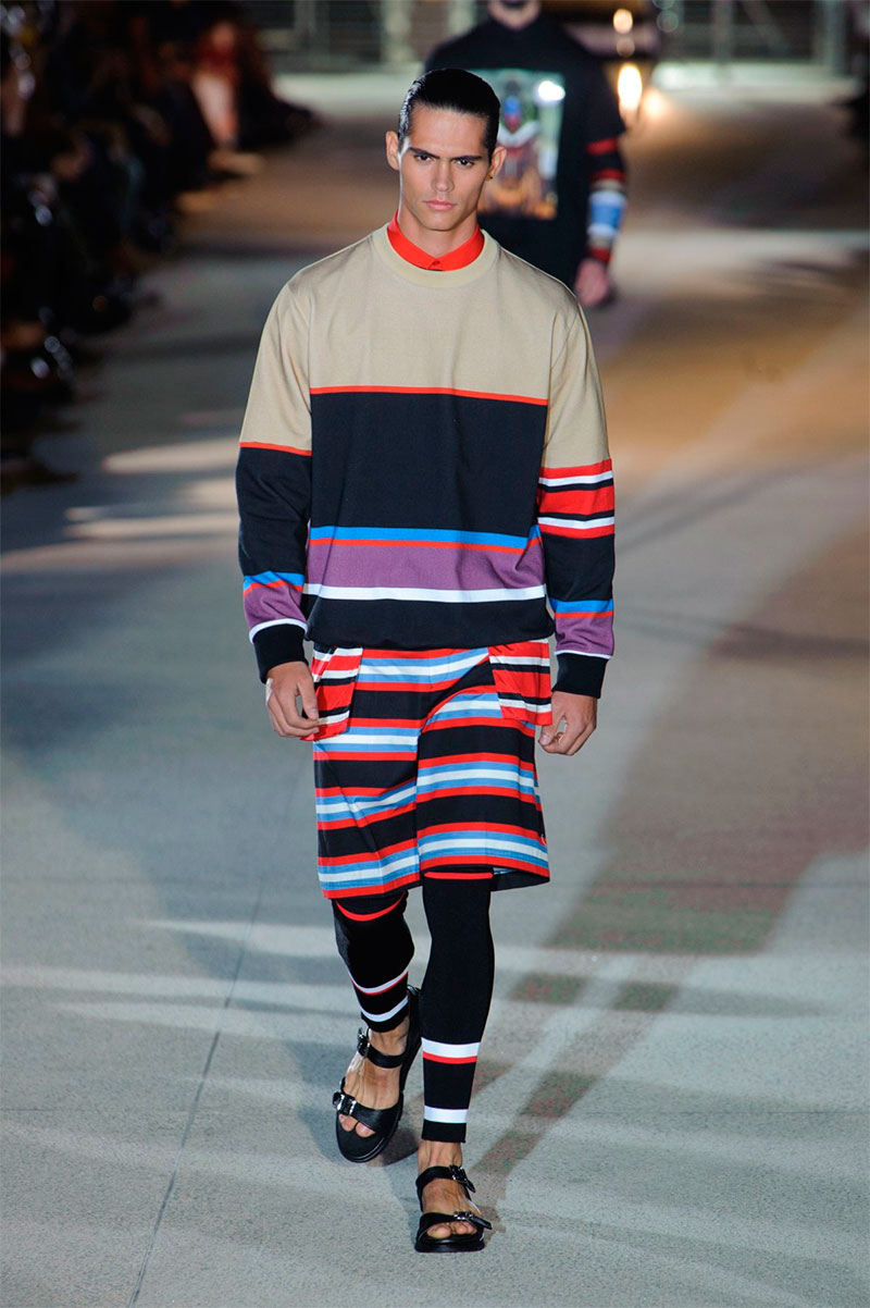 For the Givenchy Spring/Summer 2014 collection, Riccardo Tisci embarks upon a journey from America to Africa. From L.A. skaters, nerds obsessed with vintage 1970s computers, electronics’ loudspeakers to African ethnography, the show is about mixing colors, shapes, designs and prints. Colorful silhouettes exude a sporty elegance and a freedom of layering with contrasting elements.