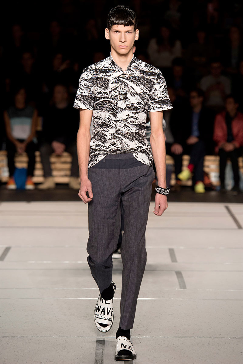 Humberto Leon and Carol Lim take us to the sea with Kenzo‘s Spring/Summer 2014 collection unveiled during Paris Fashion Week. It features structured and voluminous pieces with wave prints, some color block and interesting textures.