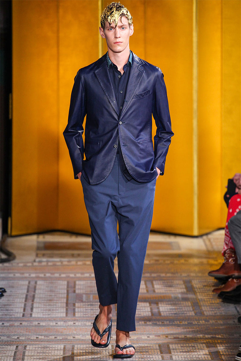 Miharayasuhiro unveiled its Spring/Summer 2014 collection during Paris Fashion Week, featuring a relaxed silhouette, beautiful prints and some gold leaf.