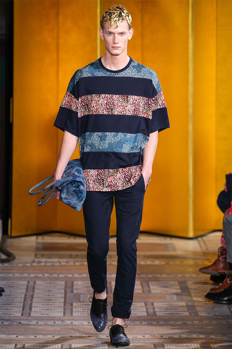 Miharayasuhiro unveiled its Spring/Summer 2014 collection during Paris Fashion Week, featuring a relaxed silhouette, beautiful prints and some gold leaf.