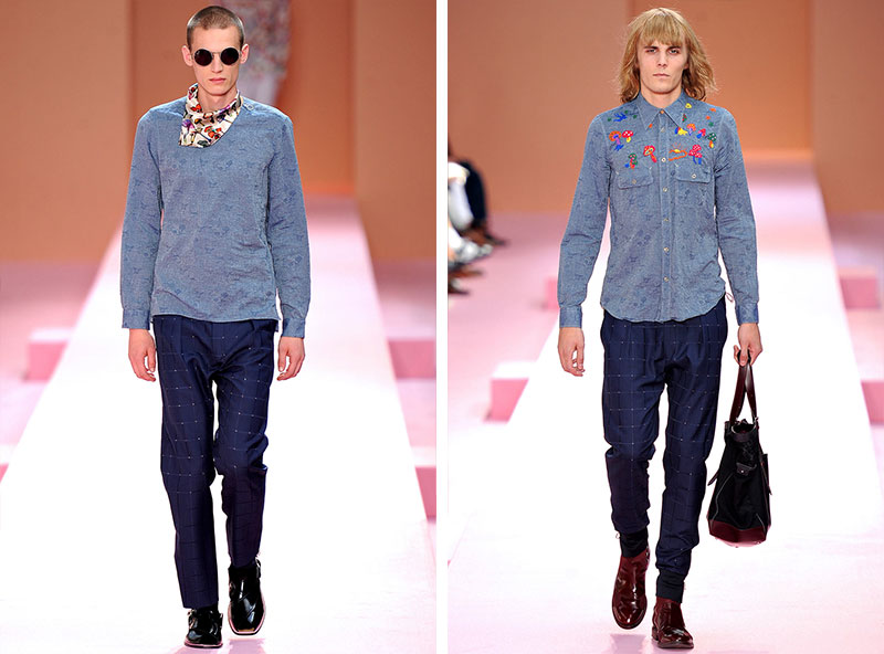 Paul Smith presented a lovely and a cool seventies inspired collection during Paris Fashion Week, featuring a pink color palette and mushroom prints. I <3 Paul Smith.