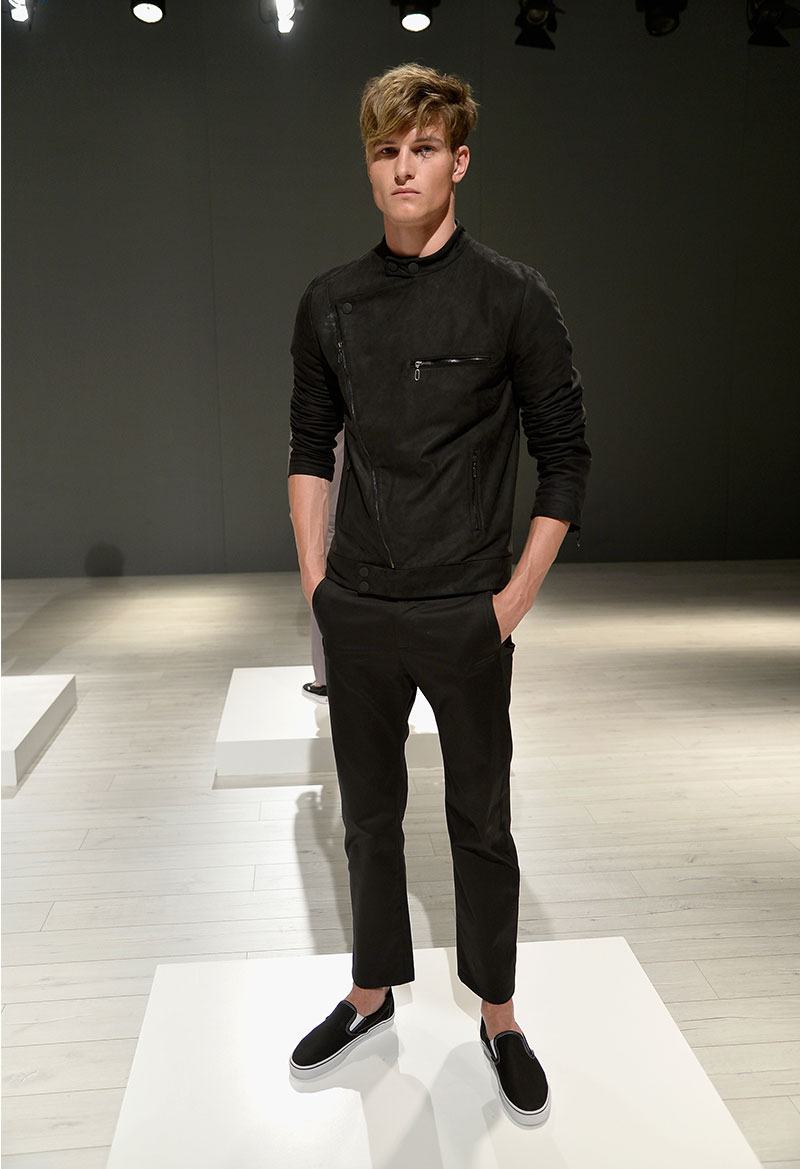 Daniel Blechman presented his Spring/Summer 2014 collection for SOPOPULAR during Mercedes-Benz Fashion Week Berlin, featuring classic cuts and narrow silhouettes, broken with edgy streetwear elements and futuristic design details.
