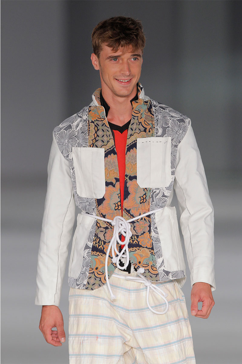 Alexis Reyna presented his Spring/Summer 2014 collection during 080 Barcelona Fashion, featuring a slightly oversized looks with a strong emphasis on patchwork, print and a mesh of patterns.