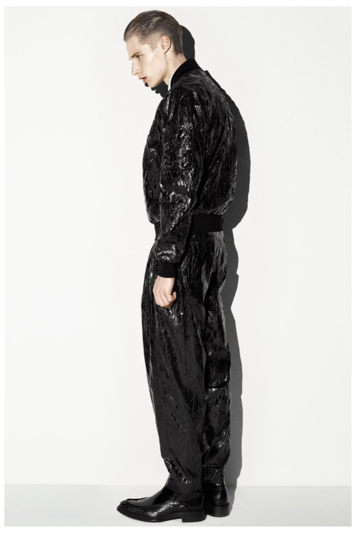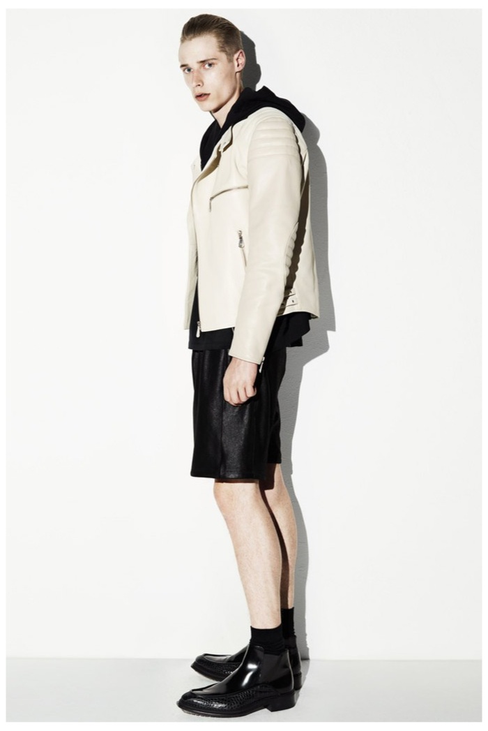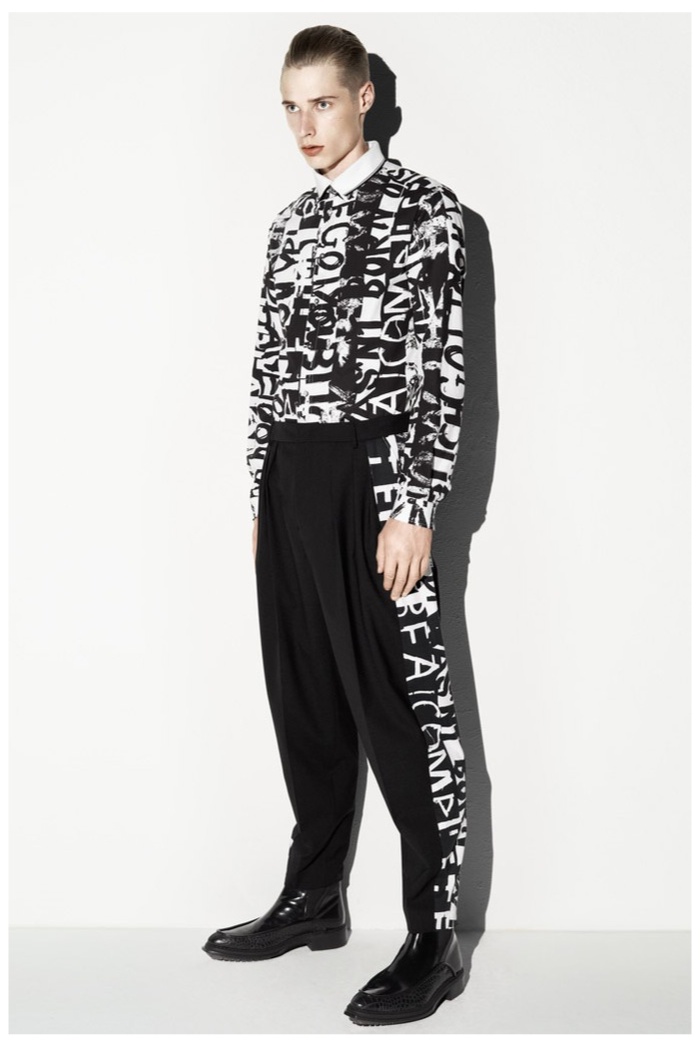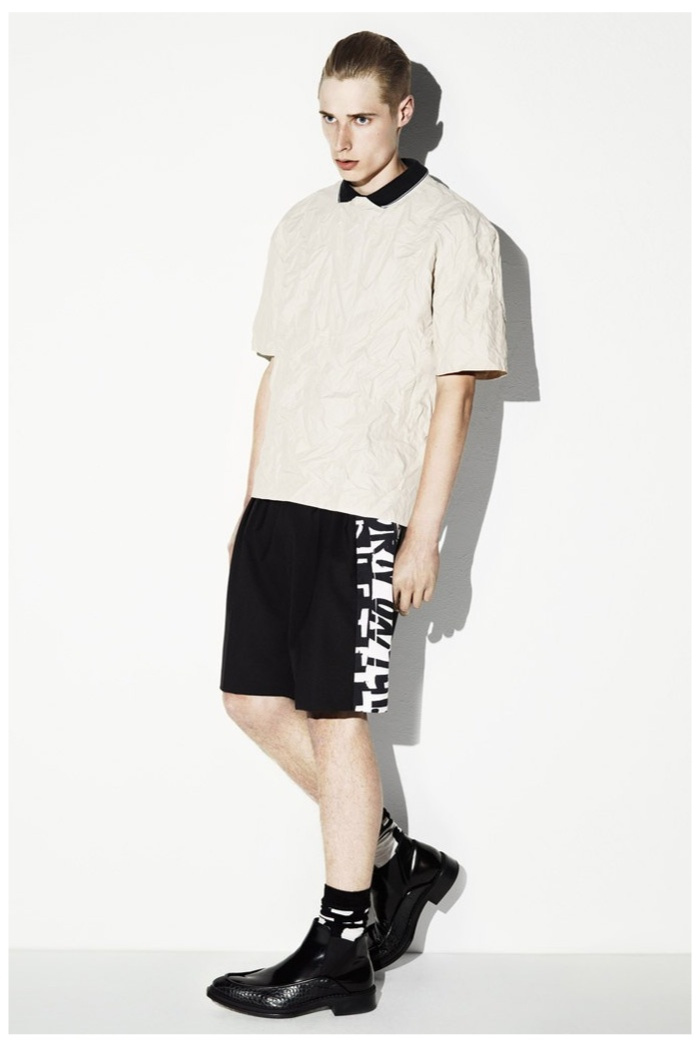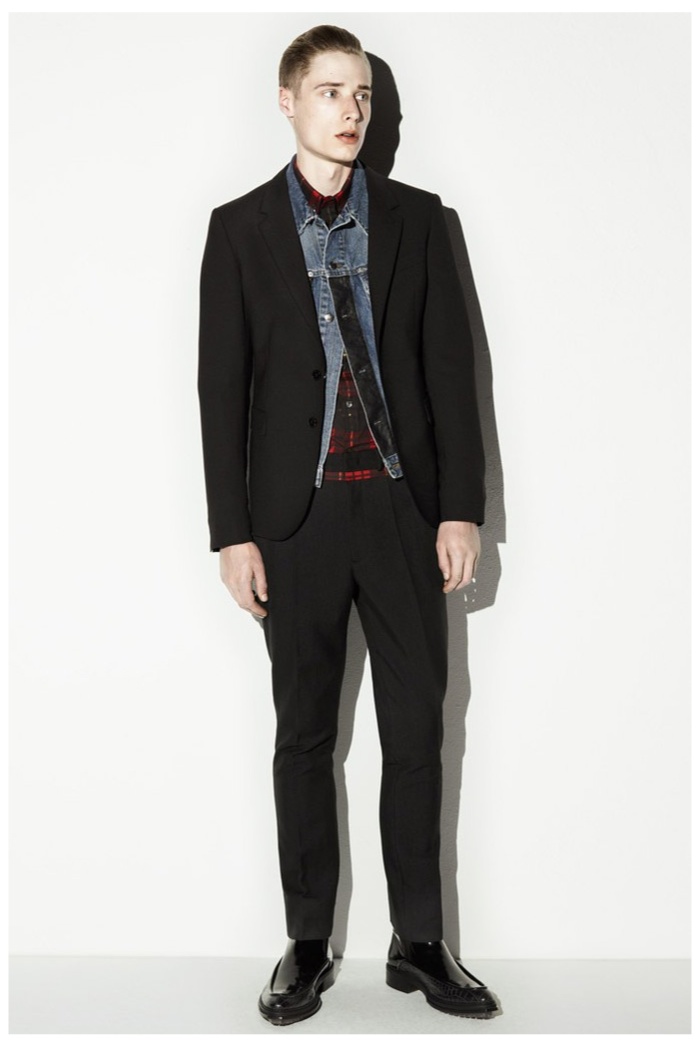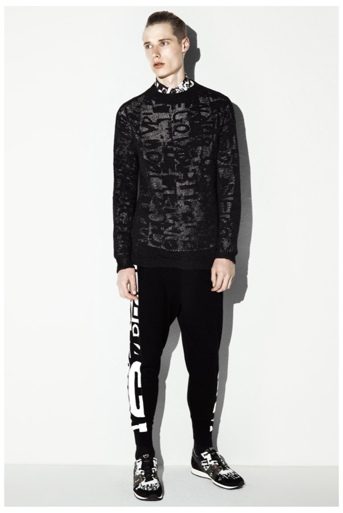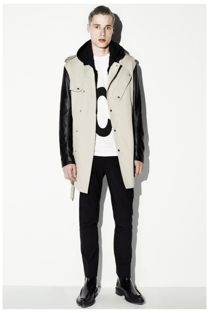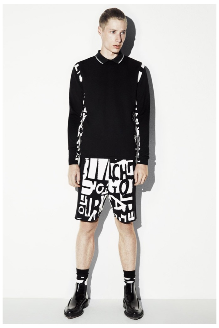 The club scene of the 1990′s informs the spring/summer 2014 McQ collection by Alexander McQueen creative director Sarah Burton. Colorful crosses create a graphic design motif while distressing on pants and sheer knits create a fun combination for logo-adorned basics. Playing with tartan, denim and a graffiti print, the collection comes full circle with an interjection of streetwear-inspired fits taken in a sartorial direction.
