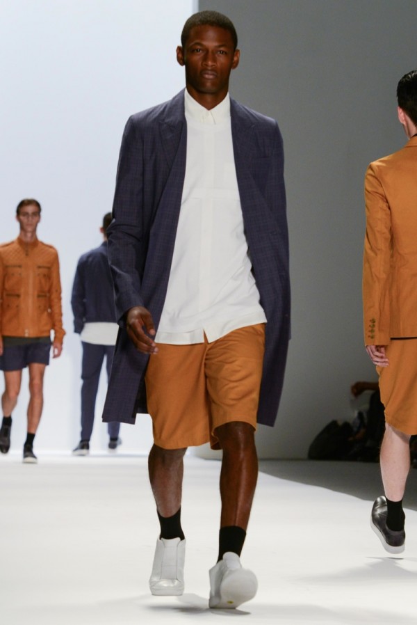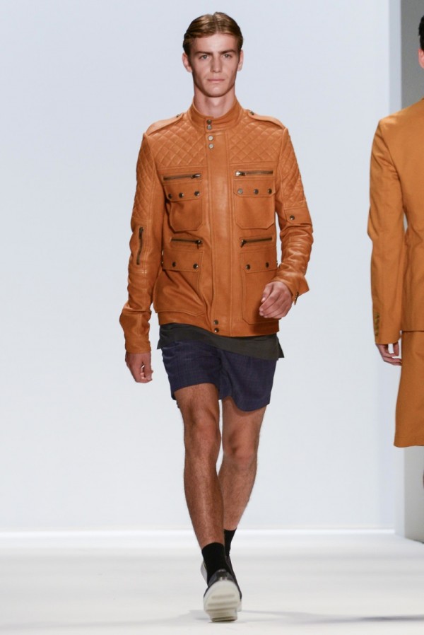 Richard Chai looked to the energy of New York City to set the stage for his spring/summer 2014 collection. Chai explained that he was inspired by “geometric shapes and patterns, but doing them in a way that feels soft and fluid.” Fused with his inclination for sportswear, the collection proved effortless with soft lines and a color palette that touched upon a natural hued summer juxtaposed with the harshness of the city. Collaborating with label Andrew Marc, Chai took advantage of his new role as creative design consultant, working on this season’s leather jackets.