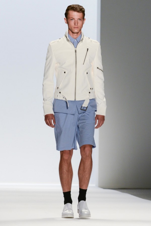 Richard Chai looked to the energy of New York City to set the stage for his spring/summer 2014 collection. Chai explained that he was inspired by “geometric shapes and patterns, but doing them in a way that feels soft and fluid.” Fused with his inclination for sportswear, the collection proved effortless with soft lines and a color palette that touched upon a natural hued summer juxtaposed with the harshness of the city. Collaborating with label Andrew Marc, Chai took advantage of his new role as creative design consultant, working on this season’s leather jackets.