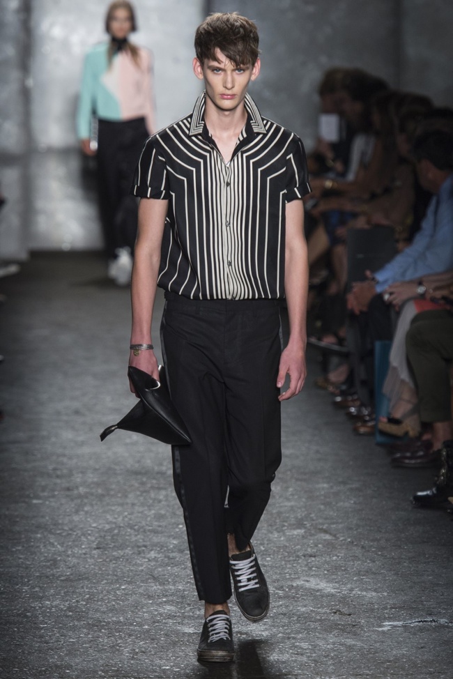 The 90s continue to make a comeback with Marc by Marc Jacobs’ spring/summer 2014 collection. Offering a relaxed guide to the season, the outing simplifies style with a lineup dominated by suiting and smart sportswear. Cutting a large lapel and loosening the fit, jackets and trousers are instantly comfortable. Classic menswear trademarks like the pinstripe suit become a young staple with the collection’s laid-back attitude. Amplified by silk bombers and short-sleeve printed button-downs, Marc by Marc Jacobs hones in on a cool nonchalance.