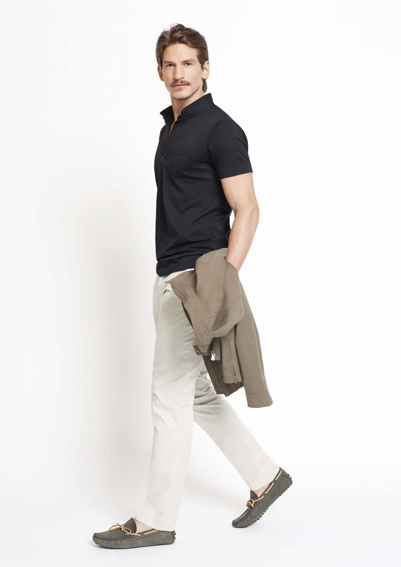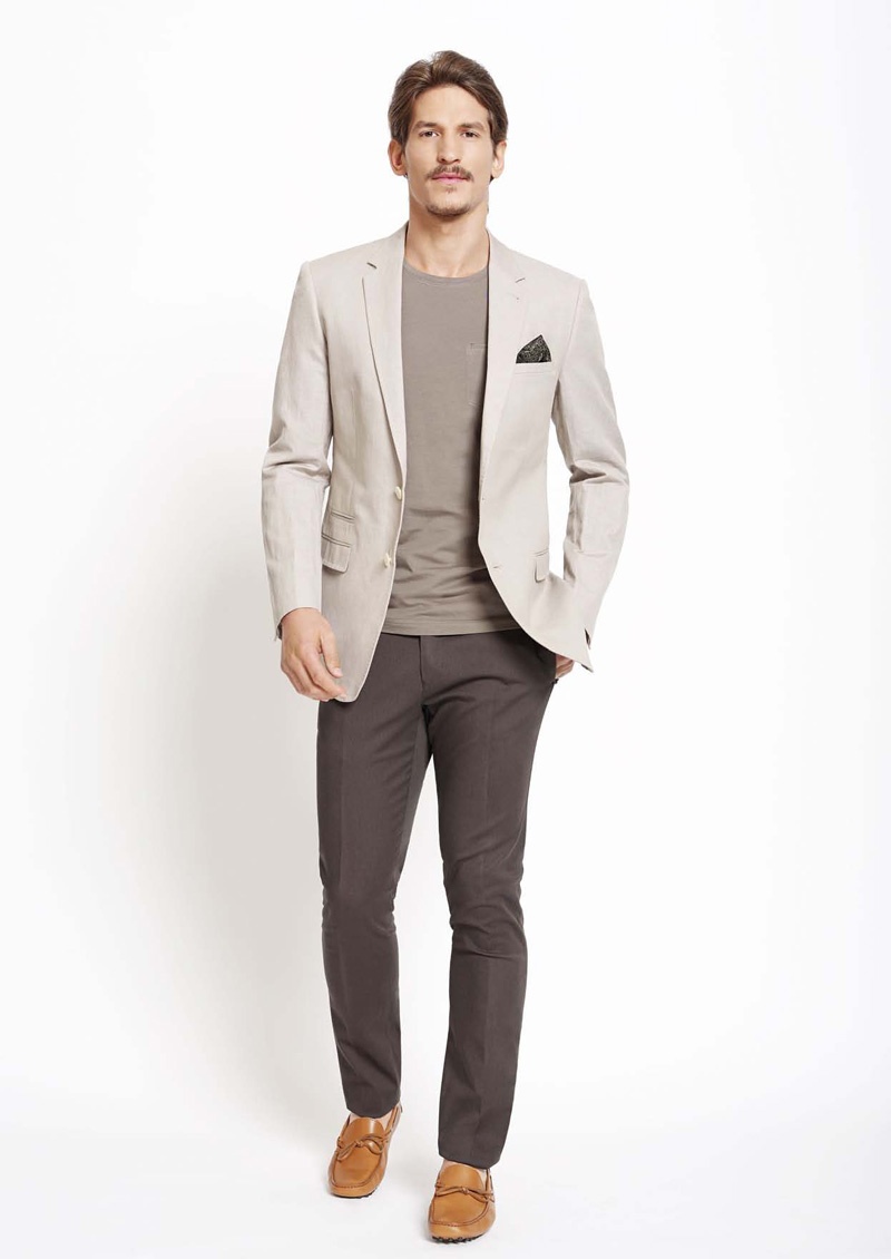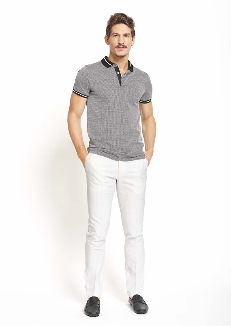 Australian label Calibre enlists model Jarrod Scott to shoot their summer 2013/14 look book. Taking on more than just another day at the beach, the brands tackles smart sportswear. Juxtaposed with pops of color, crisp trousers and twill shorts are paired with polo shirts and sharp jackets. Showcasing two-button suits and tuxedos, Calibre proves that their man can master formal attire as well.