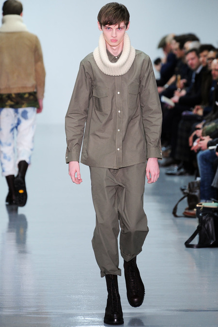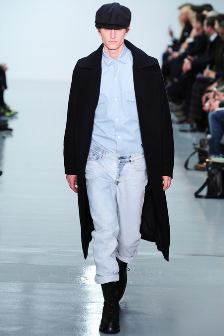 Lou Dalton presented a Fall/Winter 2014 collection inspired by the farmhands clobber of her youth, during London Collections: Men.