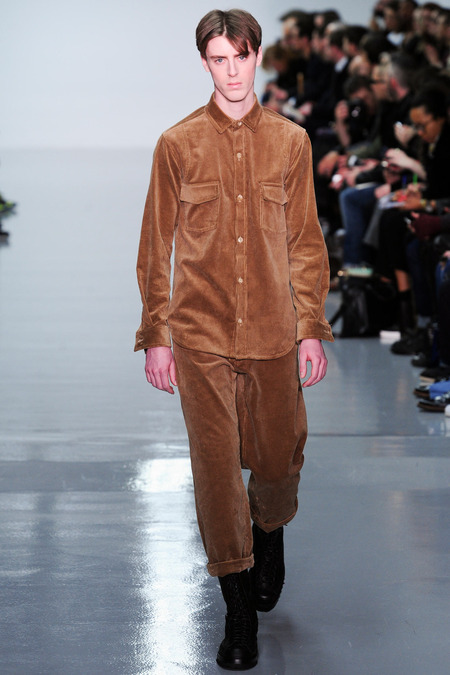 Lou Dalton presented a Fall/Winter 2014 collection inspired by the farmhands clobber of her youth, during London Collections: Men.