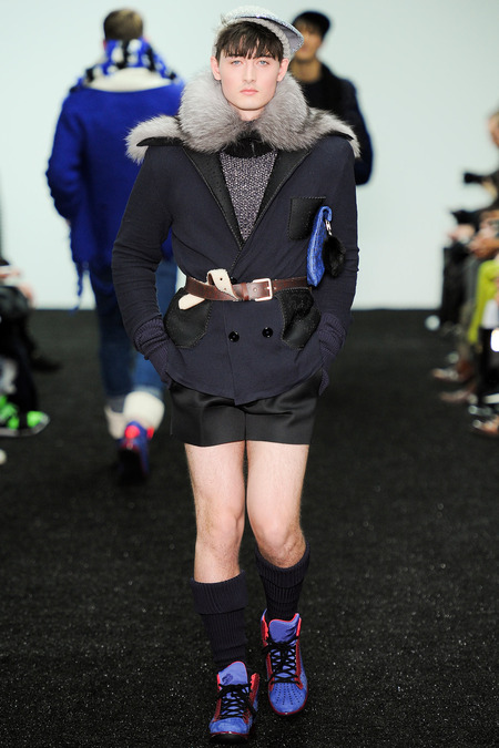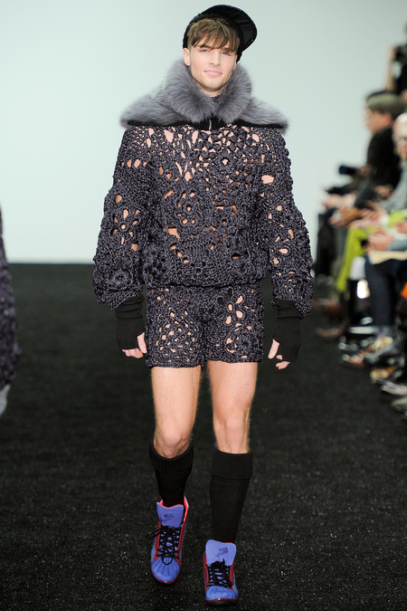 Sibling is a knitwear-specific triumvirate of Sid Bryan, Joe Bates and Cozette McCreery. It was launched in 2008 as an antidote to what we felt was a lack of choice in menswear knit on offer either in stores or from designers themselves. With a fun, colourful and great quality on the whole, multiples of knit so hat, scarf, jumpers, cardigans, joggers, socks, and gloves for this Fall/Winter 2014 Collection at London Collection Menswear.