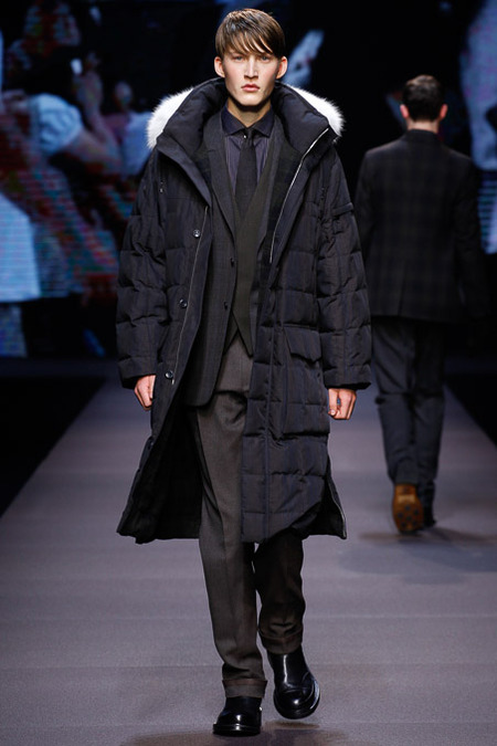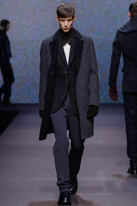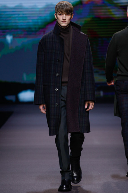 Ermenegildo Zegna presented its Fall/Winter 2014 collection during Milan Fashion Week. Stefano Pilati explores and combines absolute concepts by relativising their origins: merging the formal with sportswear; dark tones with light; nuances to graphisms.