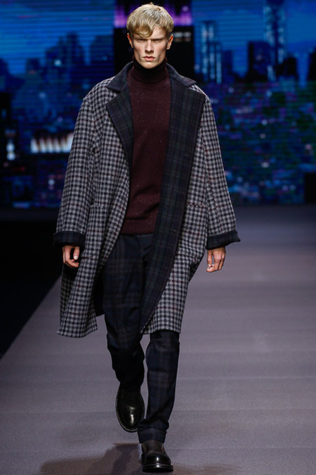 Ermenegildo Zegna presented its Fall/Winter 2014 collection during Milan Fashion Week. Stefano Pilati explores and combines absolute concepts by relativising their origins: merging the formal with sportswear; dark tones with light; nuances to graphisms.