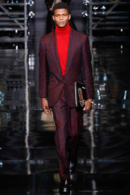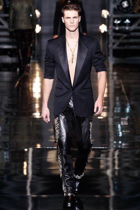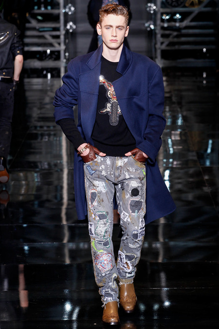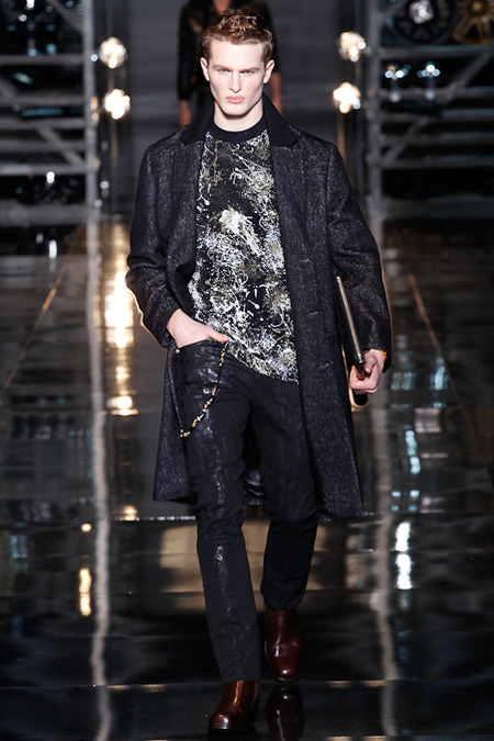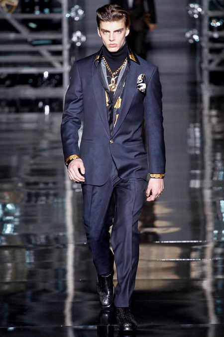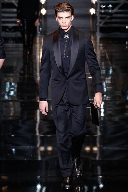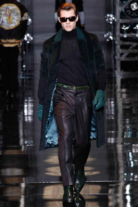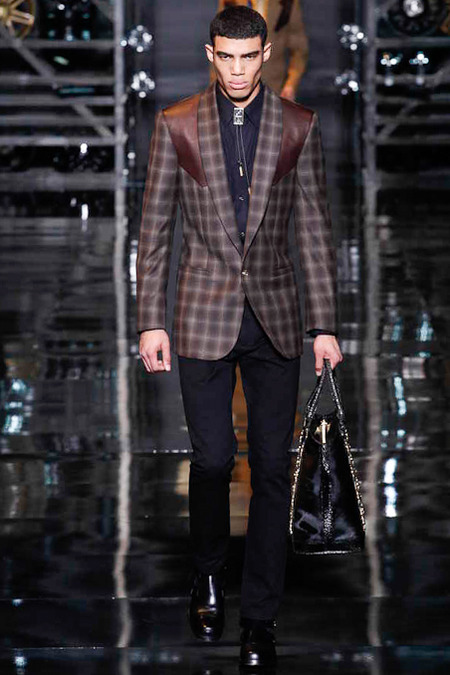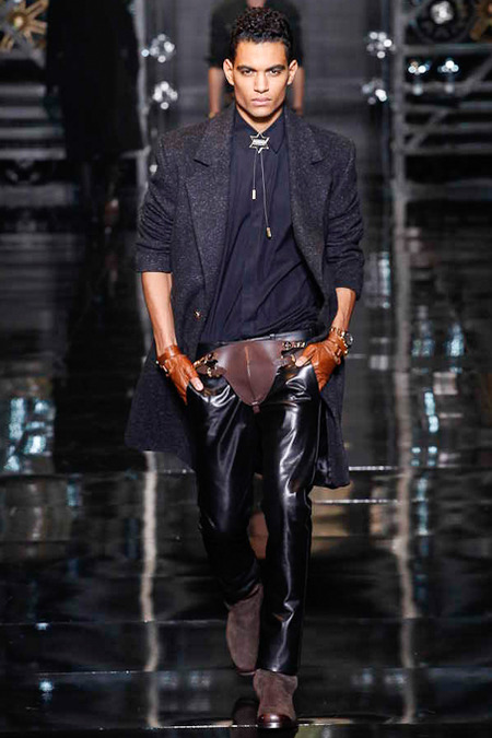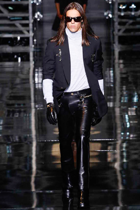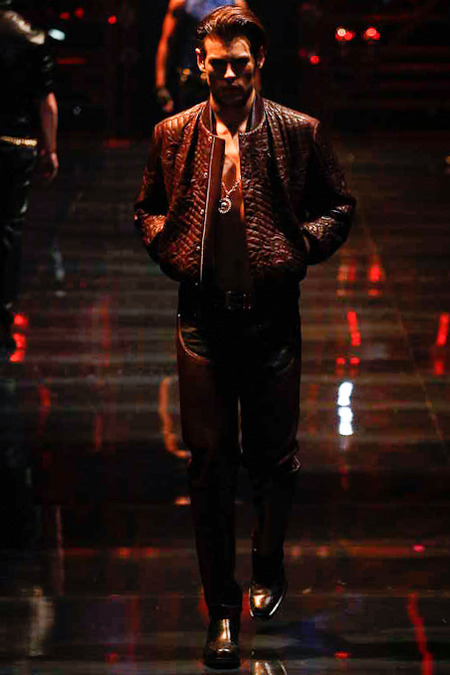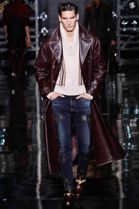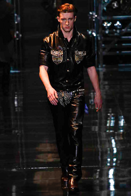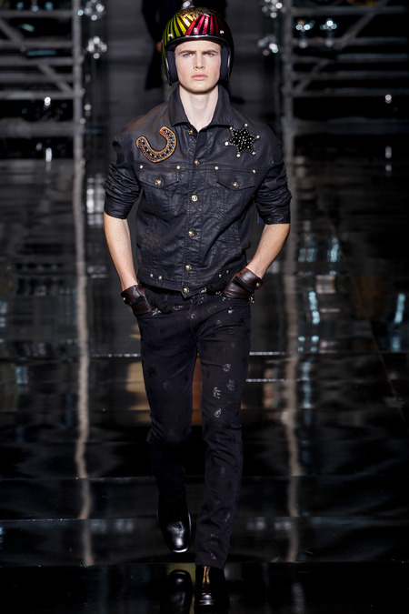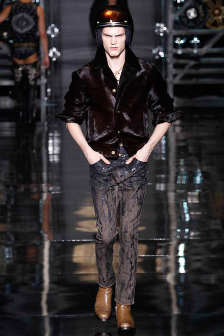 Donatella Versace presented a flamboyant Fall/Winter 2014 collection during Milan Fashion Week, featuring cowboy-inspired looks for the modern biker.