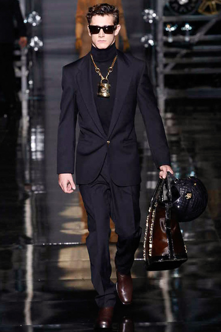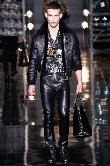 Donatella Versace presented a flamboyant Fall/Winter 2014 collection during Milan Fashion Week, featuring cowboy-inspired looks for the modern biker.