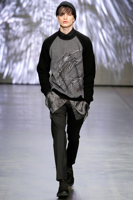 Federico Curradi presented his Fall/Winter 2014 collection for Iceberg during Milan Fashion Week. The classic traditional inspiration evolves into a high tech dimension through an inventive use of textures and prints.