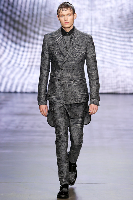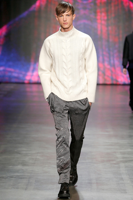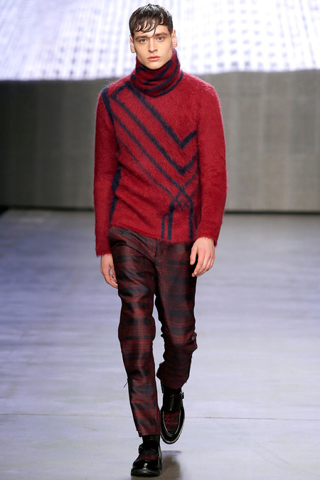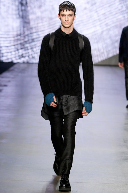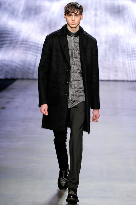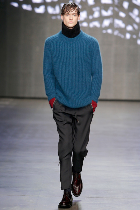 Federico Curradi presented his Fall/Winter 2014 collection for Iceberg during Milan Fashion Week. The classic traditional inspiration evolves into a high tech dimension through an inventive use of textures and prints.