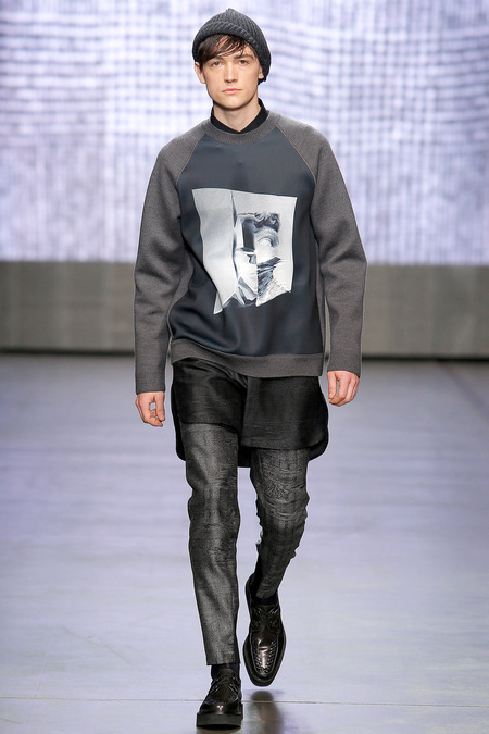 Federico Curradi presented his Fall/Winter 2014 collection for Iceberg during Milan Fashion Week. The classic traditional inspiration evolves into a high tech dimension through an inventive use of textures and prints.
