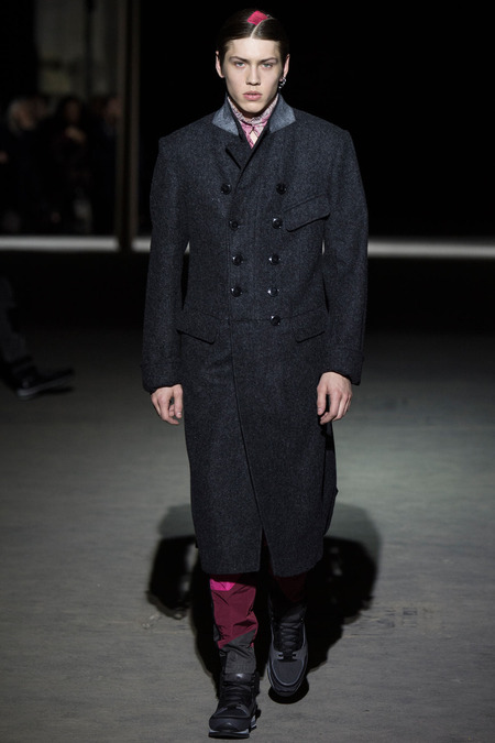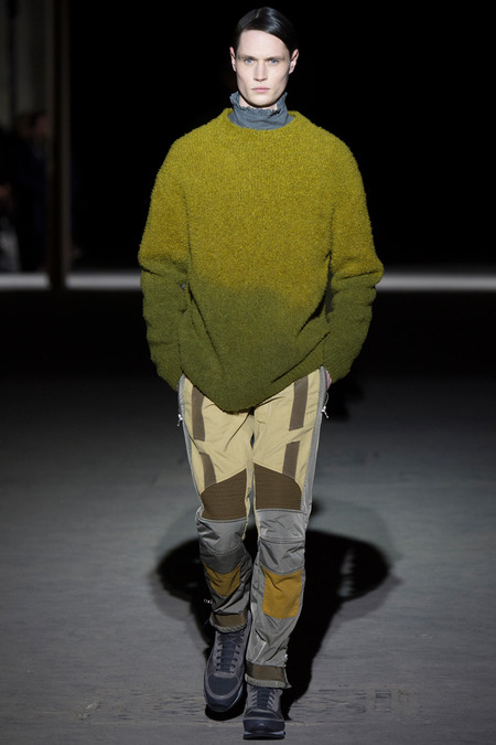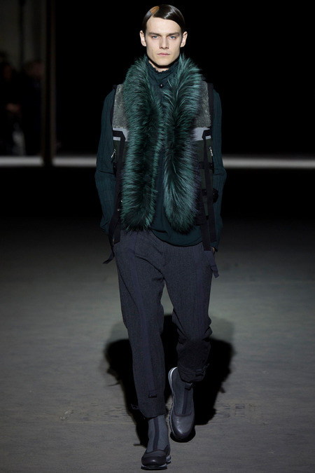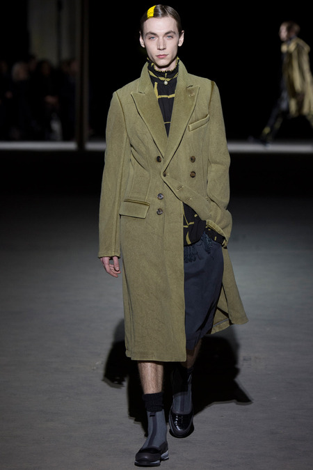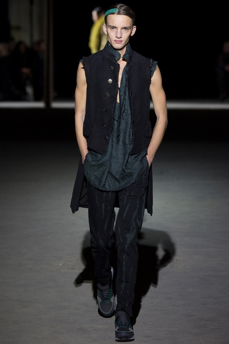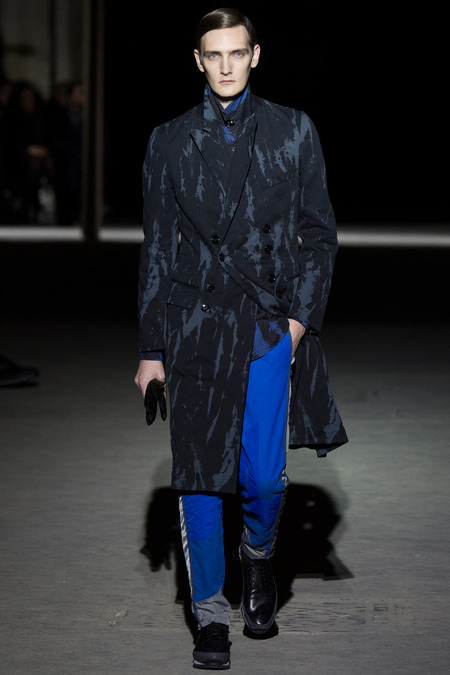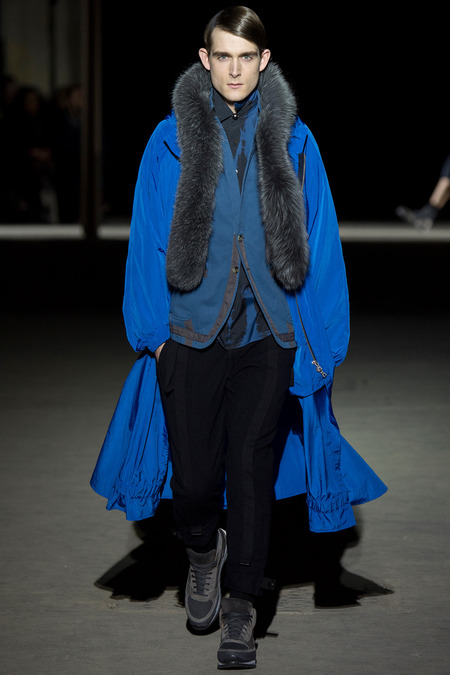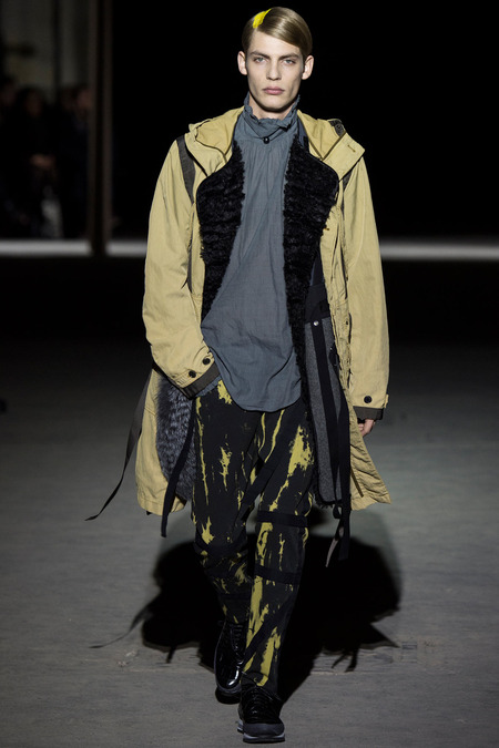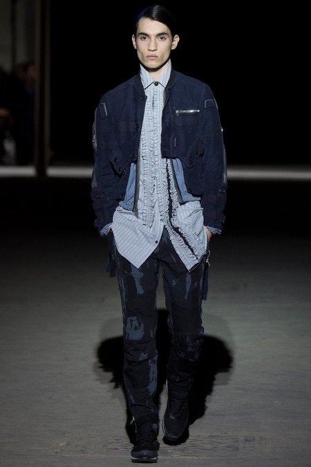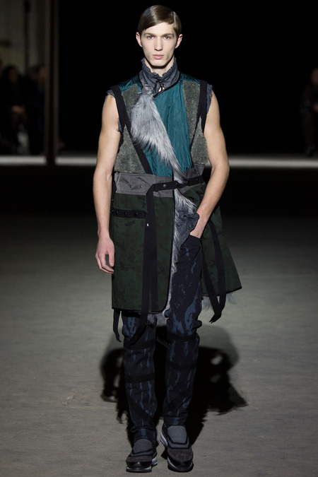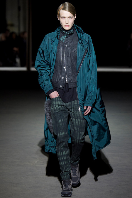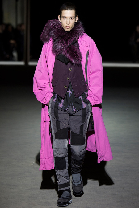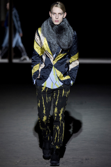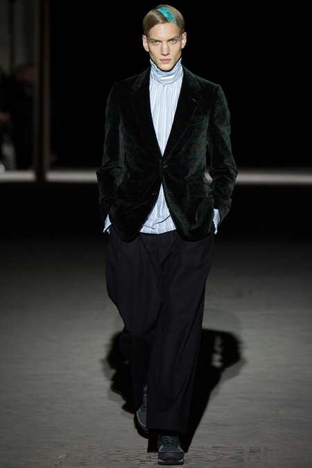 “It was hell,” said Dries Van Noten of the birth process for his new collection. So many threads of narrative, so many fabrics and complex treatments, so much more of everything than usual. But it’s kind of been that way since Van Noten started working on the retrospective that opens at the Musée des Arts Décoratifs in Paris at the beginning of March. He’s been digging deeper and deeper into the museum’s archives, finding inspiration in the clothing of distant centuries and drawing parallels with his own history, confronting it. And today’s show seemed to bring something to a head. The designer’s normal impulse to move on had become aneed to move on, to find a different way to do things. For starters, no print, no embroidery. Those Van Noten signatures of long-standing were replaced by color—tie-dyed, dip-dyed blues, pinks, yellows, and greens—and a different kind of elaborate embellishment: trailing laces and bondage straps, dyed fox scarves, pearls trimming high, frilled collars…some of the details you’d see in ancient portraits. “Rave and Renaissance” blared the show notes. Van Noten, always happy to create a new hybrid, was blending history and his story.