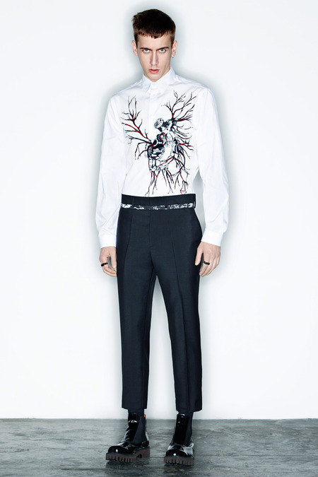 When told that a collection’s spirit is “a bit anarchist,” the natural reaction is to chuckle, not only because anarchists never do anything halfway, but also because they don’t really lay claim to a style. Still, a razor-blade motif, a ferocious grizzly bear, and a steampunk heart were enough to convince that this latest show from McQ had not lost its, ahem, edge. By Alex Veblen.