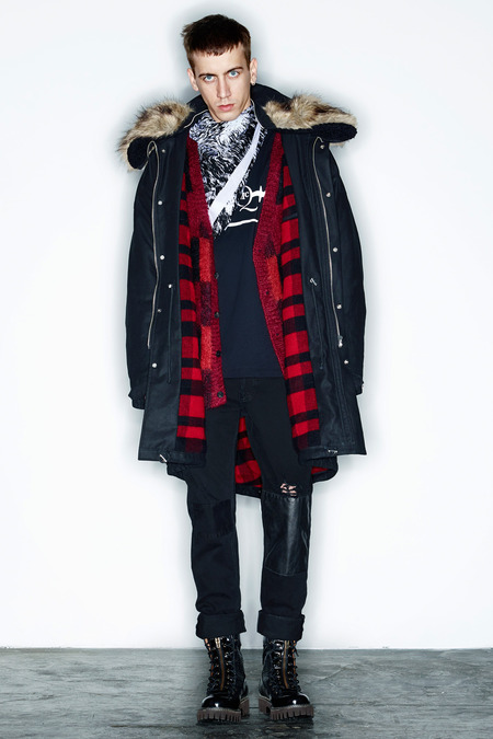When told that a collection’s spirit is “a bit anarchist,” the natural reaction is to chuckle, not only because anarchists never do anything halfway, but also because they don’t really lay claim to a style. Still, a razor-blade motif, a ferocious grizzly bear, and a steampunk heart were enough to convince that this latest show from McQ had not lost its, ahem, edge. By Alex Veblen.