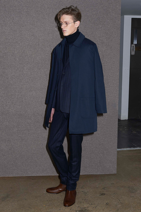 Touitou spoke first. He has embraced his role as a kind of grizzled professeur of style, and his address, illustrated by a few rounds of models in A.P.C.’s Fall collection, was a disquisition on elegance. He summoned the spirits of four men he considers paragons of the form: Yves Saint Laurent (for his own style in this case, not his collections), Marcel Proust, Kurt Cobain, and Marc Jacobs (pre-mid-career gymnification). Saint Laurentian elegance had a proper, shirt-and-tie expression, though one tunic look suggested his North African adventures. Touitou even commissioned the makers of YSL’s iconic glasses, Maison Bonnet, to produce a few similar rectangular styles for A.P.C. Proust was represented by fur-trimmed coats, and Jacobs and Cobain, twin pillars of grunge, inspired ripped jeans and flannel overshirts worn loose. “Marc had his own style before he became a yoga star,” Touitou said. “I have this nostalgia for Marc. He looked like a teacher of semiology in Princeton, New Jersey.” Despite the jeans here, one of the key takeaways of the presentation was Touitou’s injunction to not wear denim more than one day out of every two. “I call this the fight for your right not to wear jeans.”